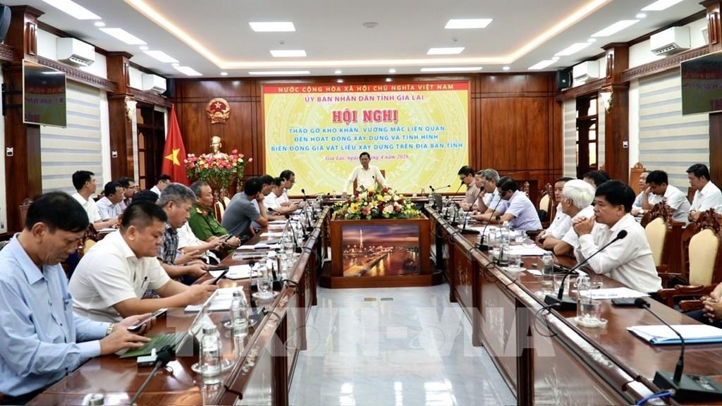 Lãnh đạo tỉnh Gia Lai họp bàn giải pháp gỡ khó cho ngành xây dựng. Ảnh: Sỹ Thắng-TTXVN