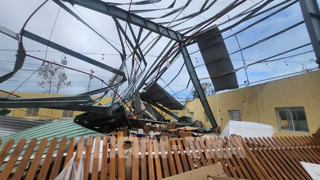 Nhiều mái tôn bị gió giật làm tốc, rách ảnh hưởng nghiêm trọng đến các nguyên vật liệu cũng như các sản phẩm của các công ty này. Trong khi đó, tại các doanh nghiệp này, hiện đang có hàng trăm tấn hàng, hàng nghìn sản phẩm, nguyên liệu có nguy cơ bị hư hỏng (thấm nước) nếu không được che chắn kịp thời.