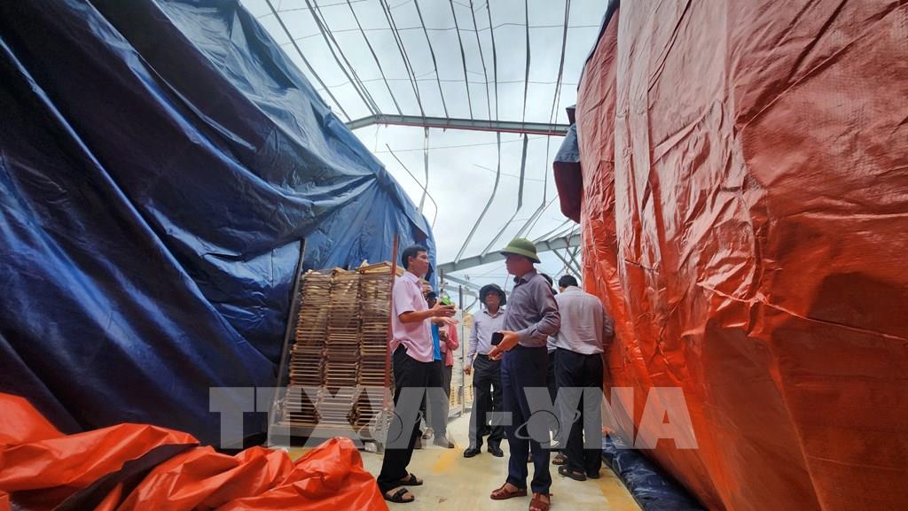 Nhiều nhà xưởng của các công ty, doanh nghiệp bị hư hỏng nặng không thể bảo vệ hàng hóa khi mưa lớn. Ảnh: Sỹ Thắng - TTXVN