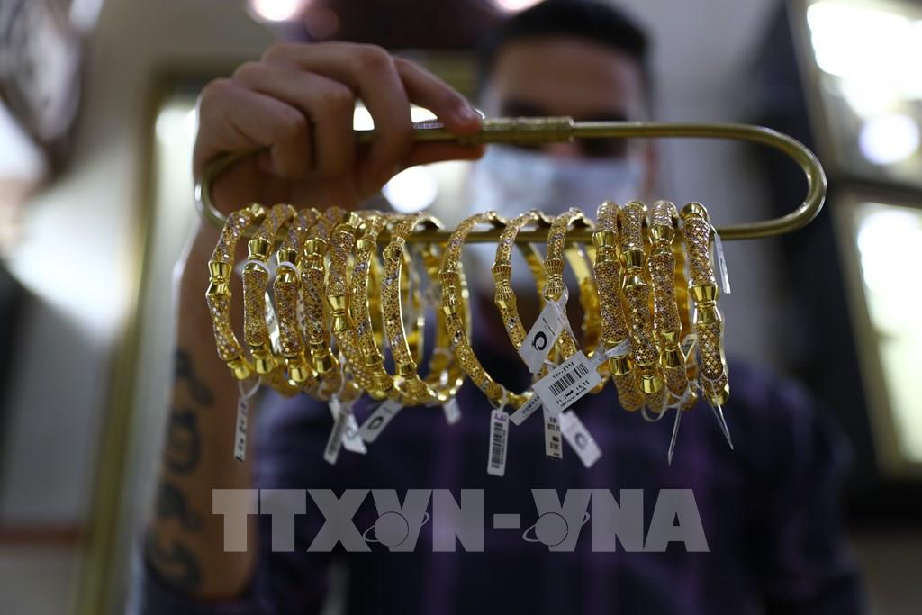 Trang sức vàng được bày bán tại cửa hàng ở Cairo, Ai Cập. Ảnh: THX/TTXVN