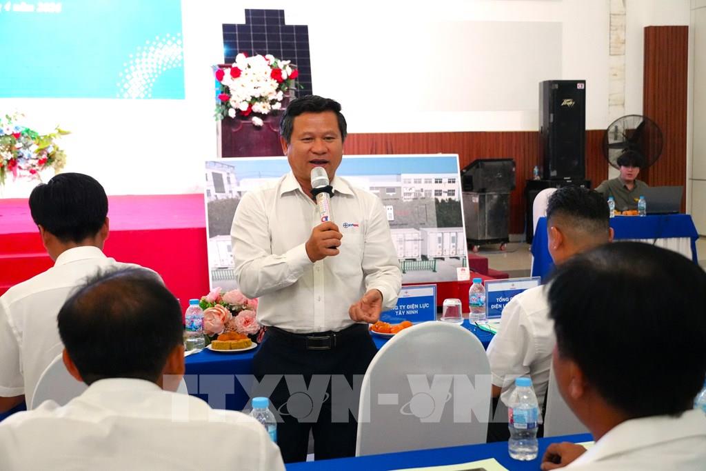 Ông Đỗ Anh Dũng, Phó Giám đốc Công ty Điện lực Tây Ninh giải đáp thắc mắc của doanh nghiệp. Ảnh: Thanh Bình -TTXVN