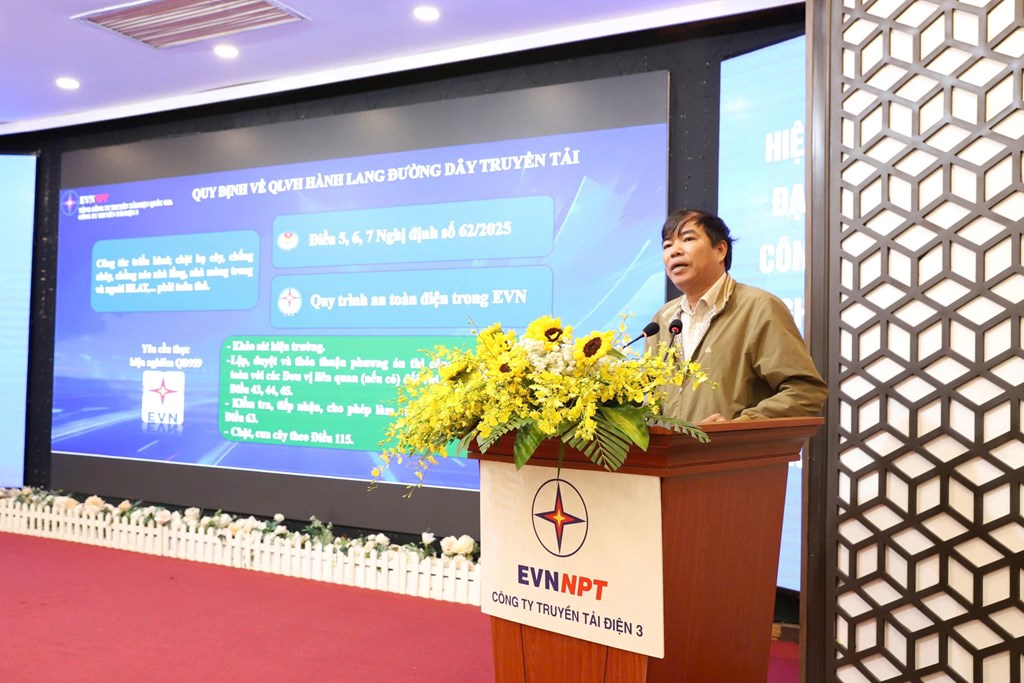 Tại hội nghị, ông Nguyễn Mạnh Tường, Trưởng phòng An toàn PTC3 đã trình bày tham luận với chuyên đề “Các giải pháp bảo đảm vận hành an toàn hành lang lưới điện truyền tải”. Theo ông Tường, hiện PTC3 đang quản lý vận hành 28 trạm biến áp (gồm 6 trạm 500kV và 22 trạm 220kV) cùng hệ thống đường dây 220kV và 500kV có tổng chiều dài hơn 6.018 km, đi qua địa bàn các tỉnh Khánh Hòa, Gia Lai, Đắk Lắk và Lâm Đồng.