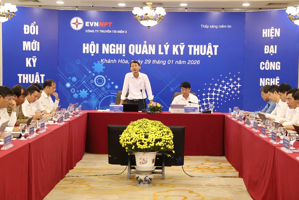 Sáng 29/1, tại Khánh Hòa, Công ty Truyền tải điện 3 (PTC3) tổ chức Hội nghị quản lý kỹ thuật nhằm đánh giá công tác quản lý, vận hành lưới điện truyền tải năm 2025 và triển khai nhiệm vụ năm 2026, hướng tới mục tiêu vận hành hệ thống điện an toàn, tin cậy và bền vững.