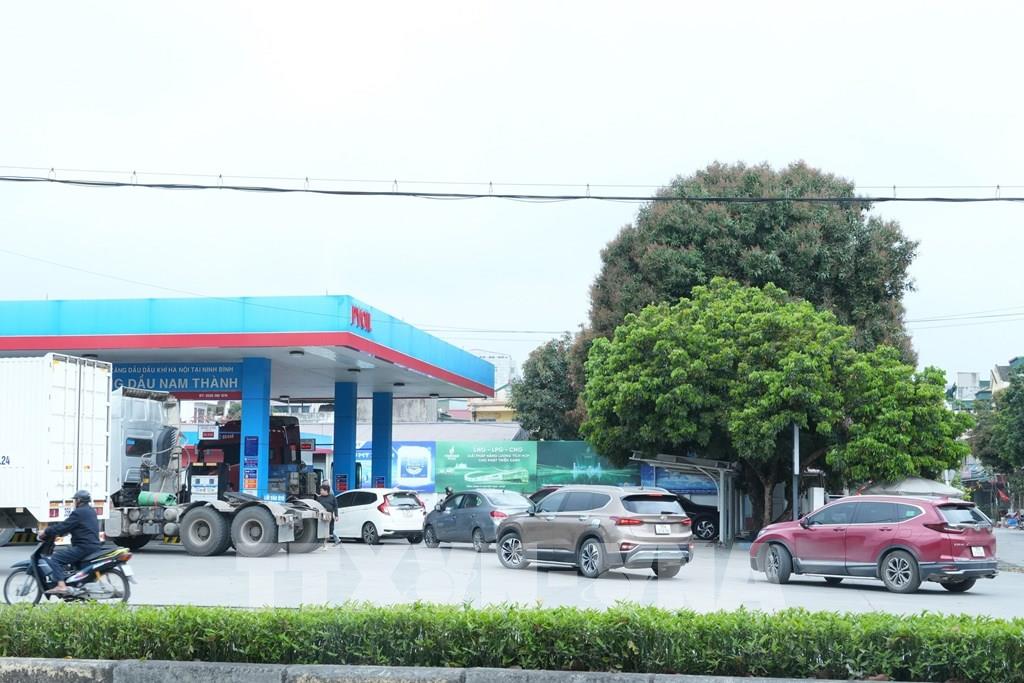 Các phương tiện chờ mua xăng dầu tại một đại lý kinh doanh trên đường 30/6, phường Hoa Lư (tỉnh Ninh Bình). Ảnh: Đức Phương - TTXVN