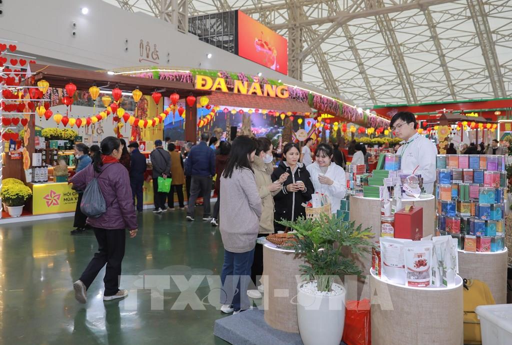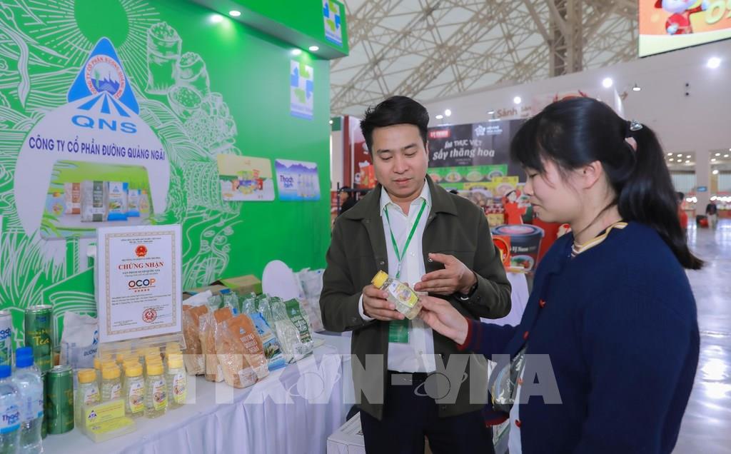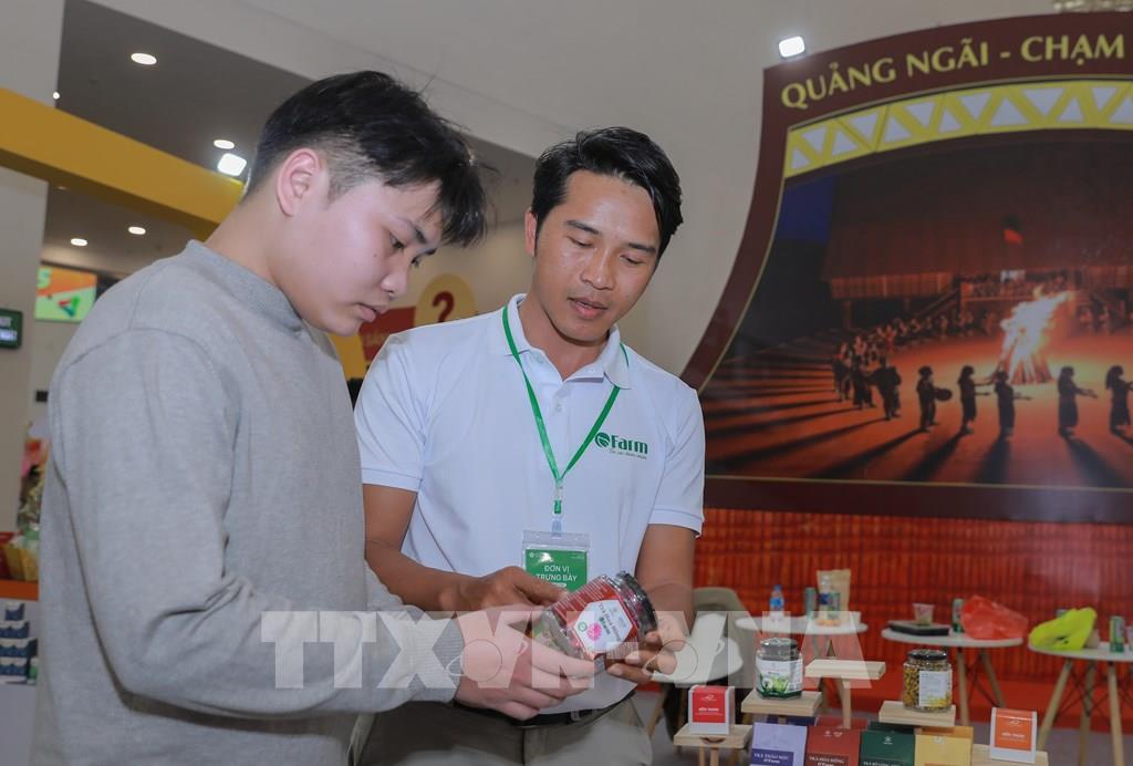 Nhiều sản phẩm với mẫu mã phong phú, đạt chứng nhận OCOP được trưng bày tại gian hàng tỉnh Quảng Ngãi thu hút đông đảo người dân. Ảnh: Phan Phương – TTXVN
