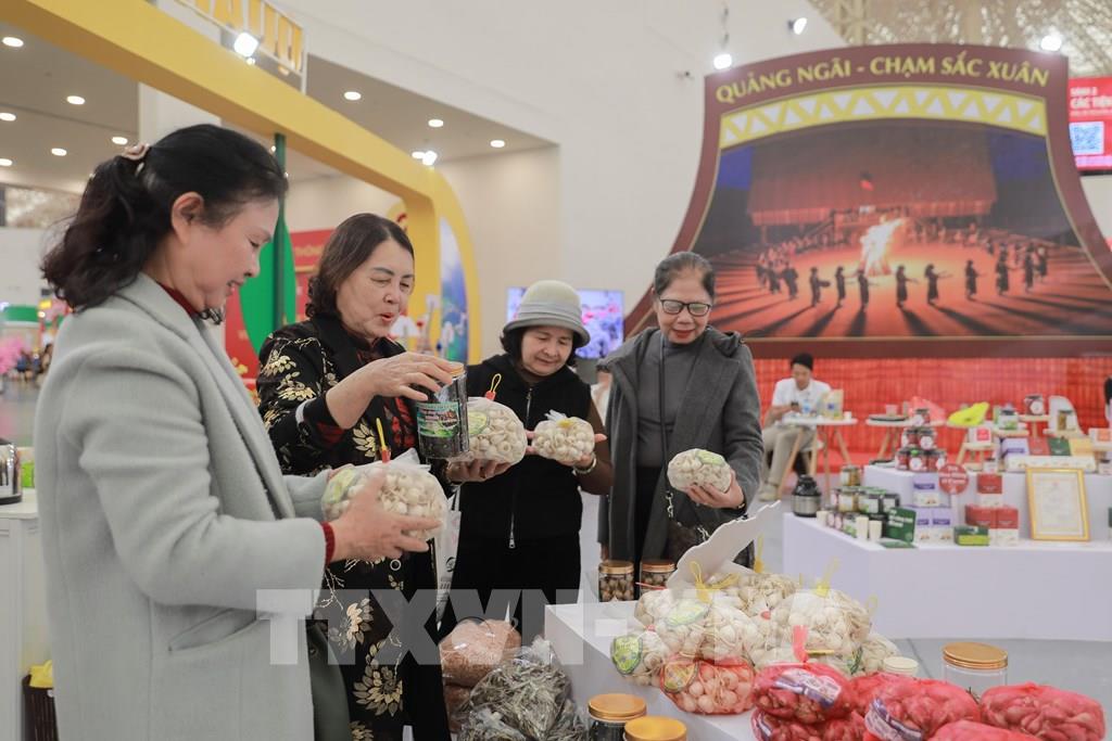 Nhiều sản phẩm với mẫu mã phong phú đặc trưng địa phương, đạt chứng nhận OCOP nhiều năm liền được trưng bày tại gian hàng tỉnh Quảng Ngãi thu hút đông đảo người dân tham quan, mua sắm. Ảnh: Phan Phương – TTXVN