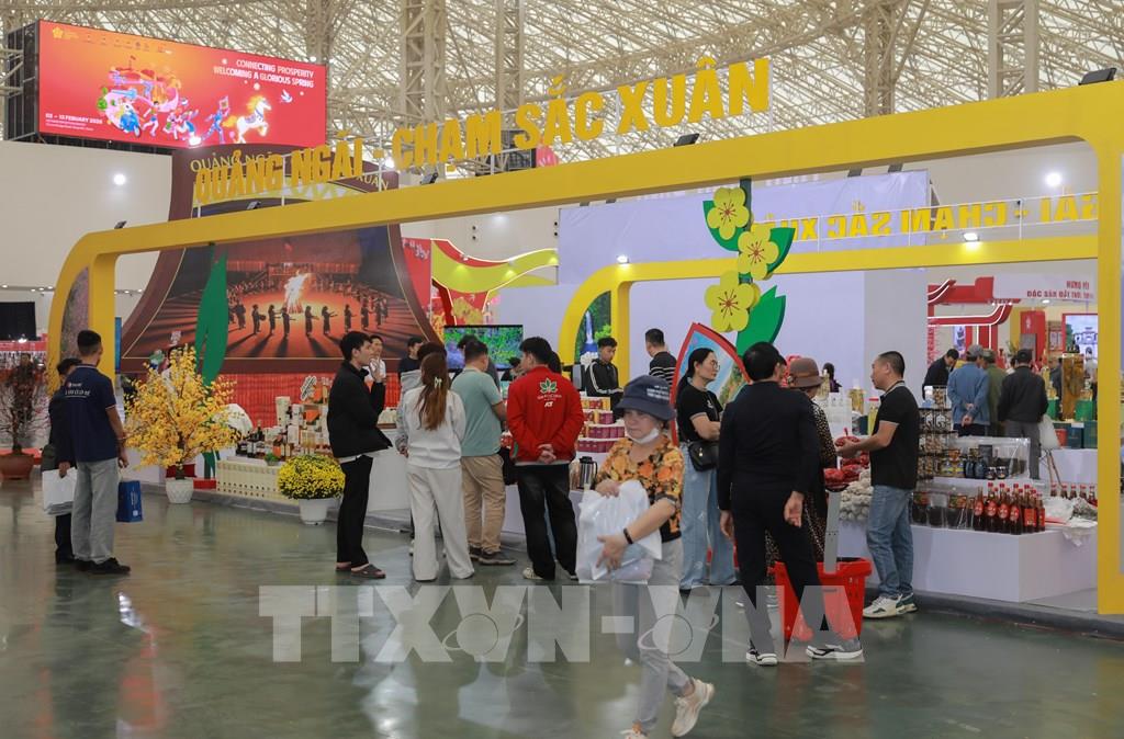 Gian hàng tỉnh Quảng Ngãi tại Hội chợ Mùa Xuân 2026 thu hút đông đảo du khách. Ảnh: Phan Phương – TTXVN