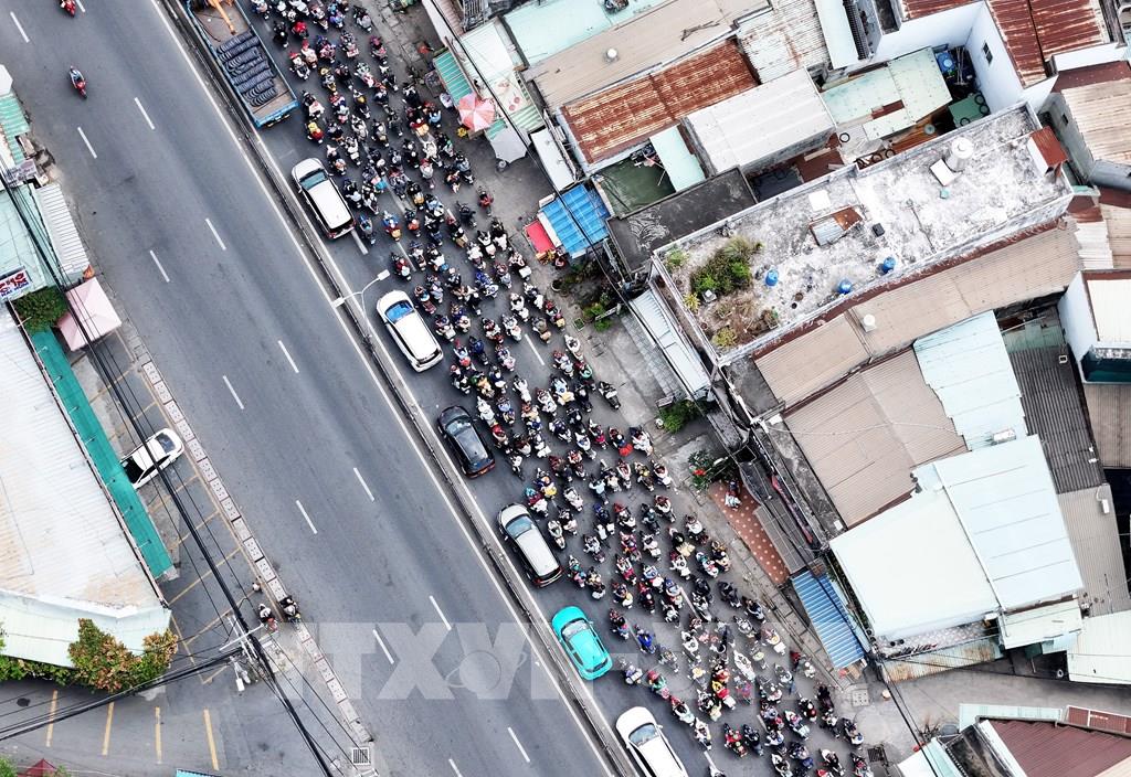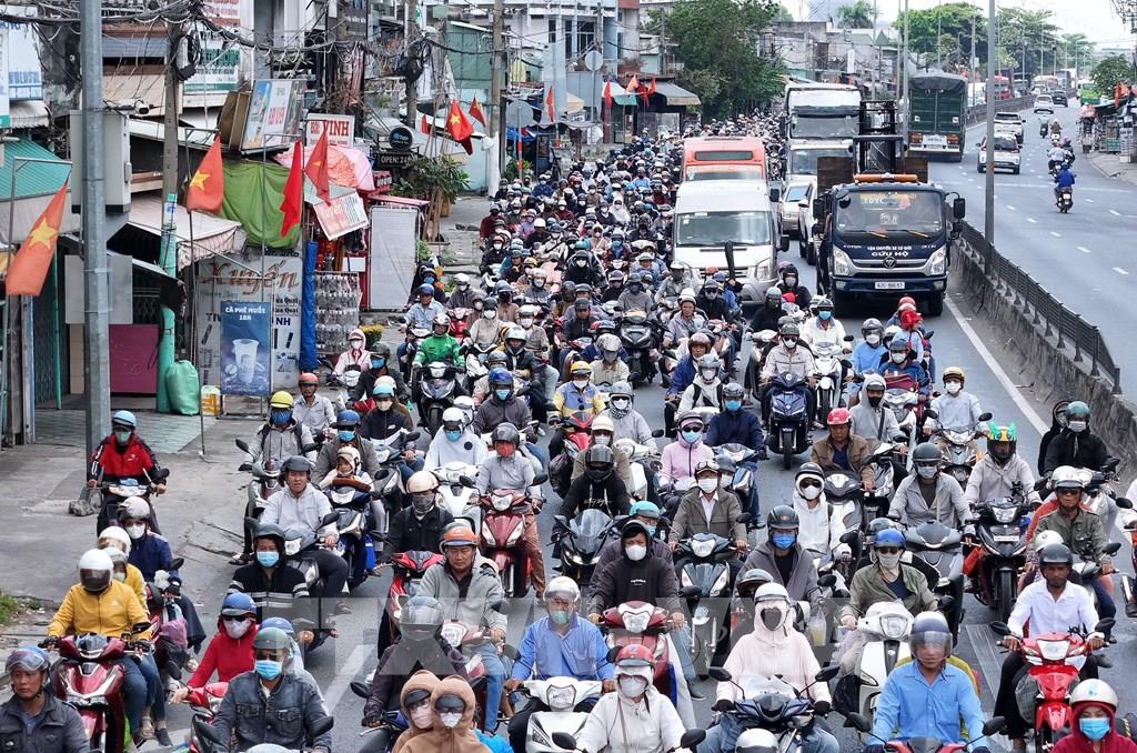 Người dân trở lại TP. Hồ Chí Minh trong tình trạng ùn ứ ở cửa ngõ Thành phố. Ảnh: Hồng Đạt - TTXVN