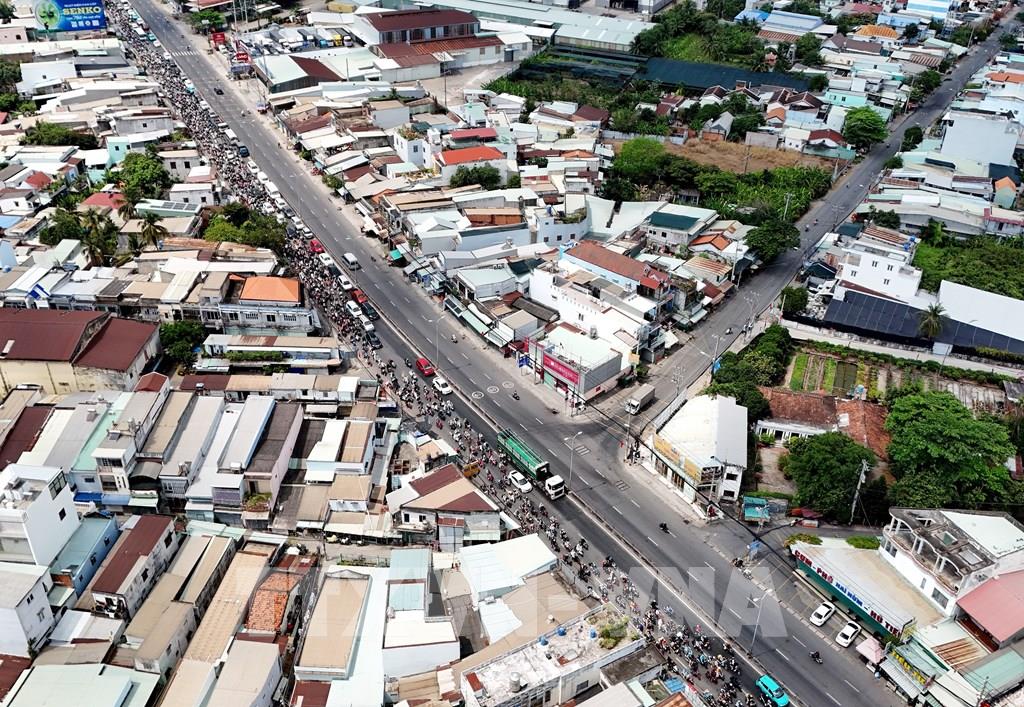 Ùn ứ giao thông trên Quốc lộ 1, qua địa bàn xã Bình Chánh, cửa ngõ phía Tây TP. Hồ Chí Minh. Ảnh: Hồng Đạt - TTXVN
