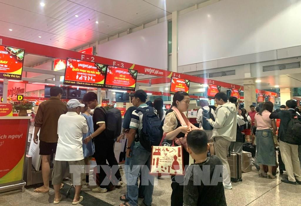 Hành khách check-in tại Cảng hàng không quốc tế Tân Sơn Nhất. Ảnh: Hồng Đạt - TTXVN