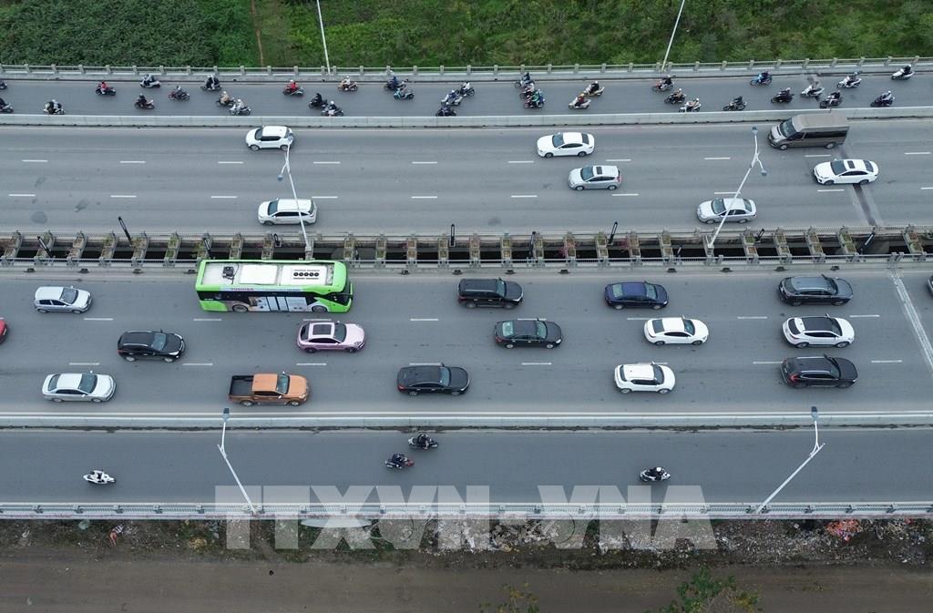 Cầu Vĩnh Tuy hướng vào trung Hà Nội thông thoáng, phương tiện lưu thông ổn định. Ảnh: Phan Phương - TTXVN