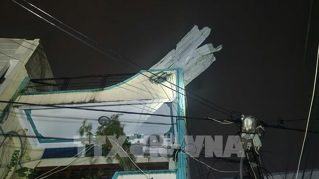 Nhà của người dân Quy Nhơn bị tốc mái do gió giật kinh hoàng sau khi bão đổ bộ. Ảnh: Sỹ Thắng-TTXVN
