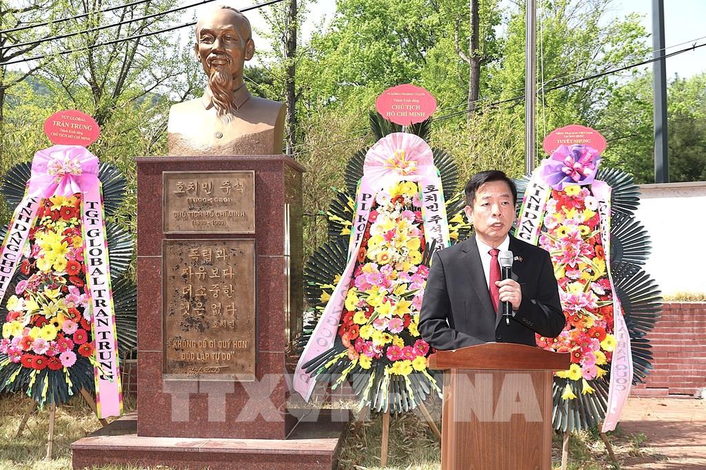 Đại sứ Vũ Hồ phát biểu tại lễ dâng hương quốc tổ Hùng Vương. Ảnh: Khánh Vân – PV TTXVN tại Hàn Quốc