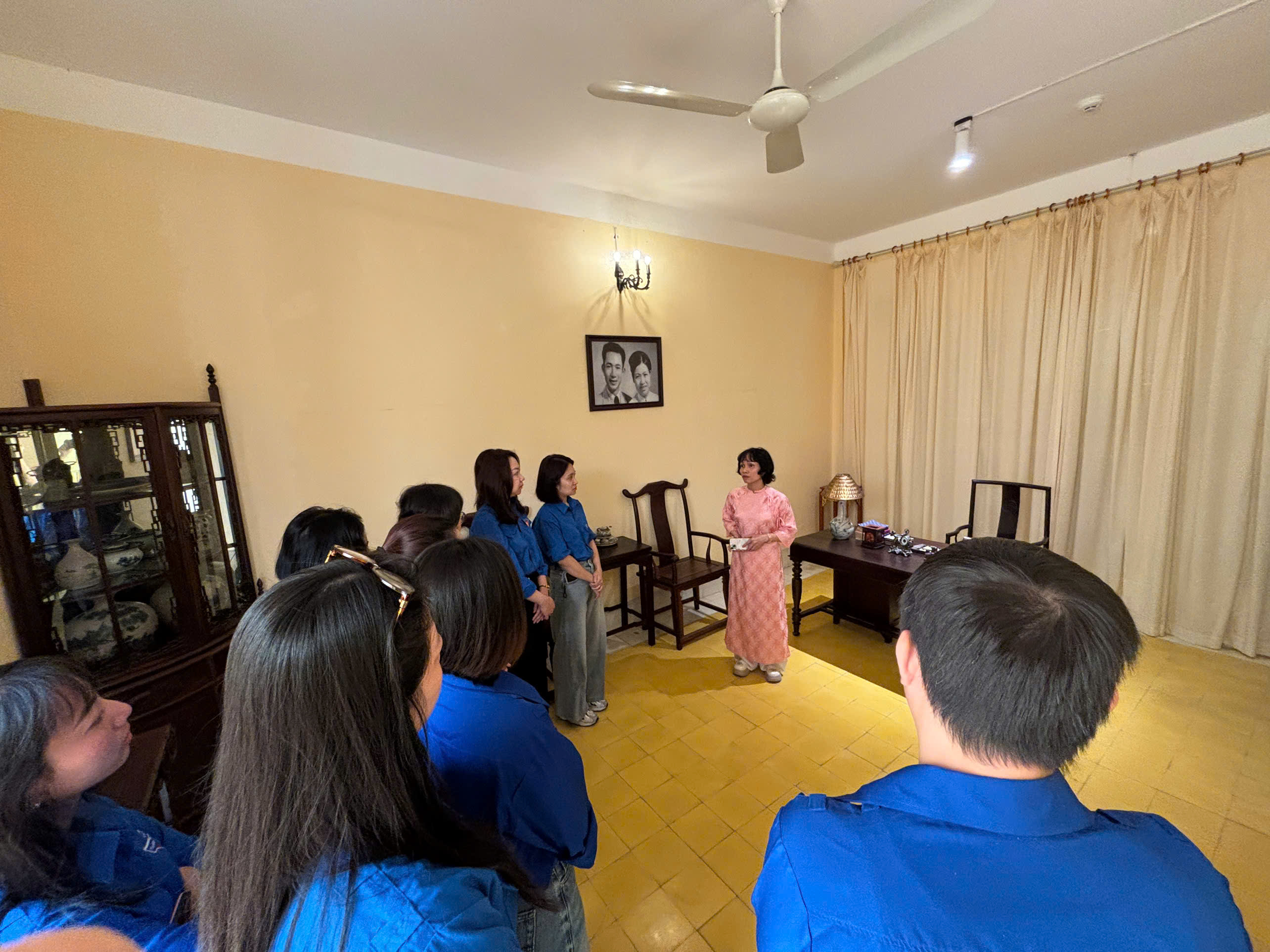 Đoàn viên chụp lưu niệm tại di tịch 48 Hàng Ngàng. Ảnh: Thùy Linh/Bnews/vnanet.vn