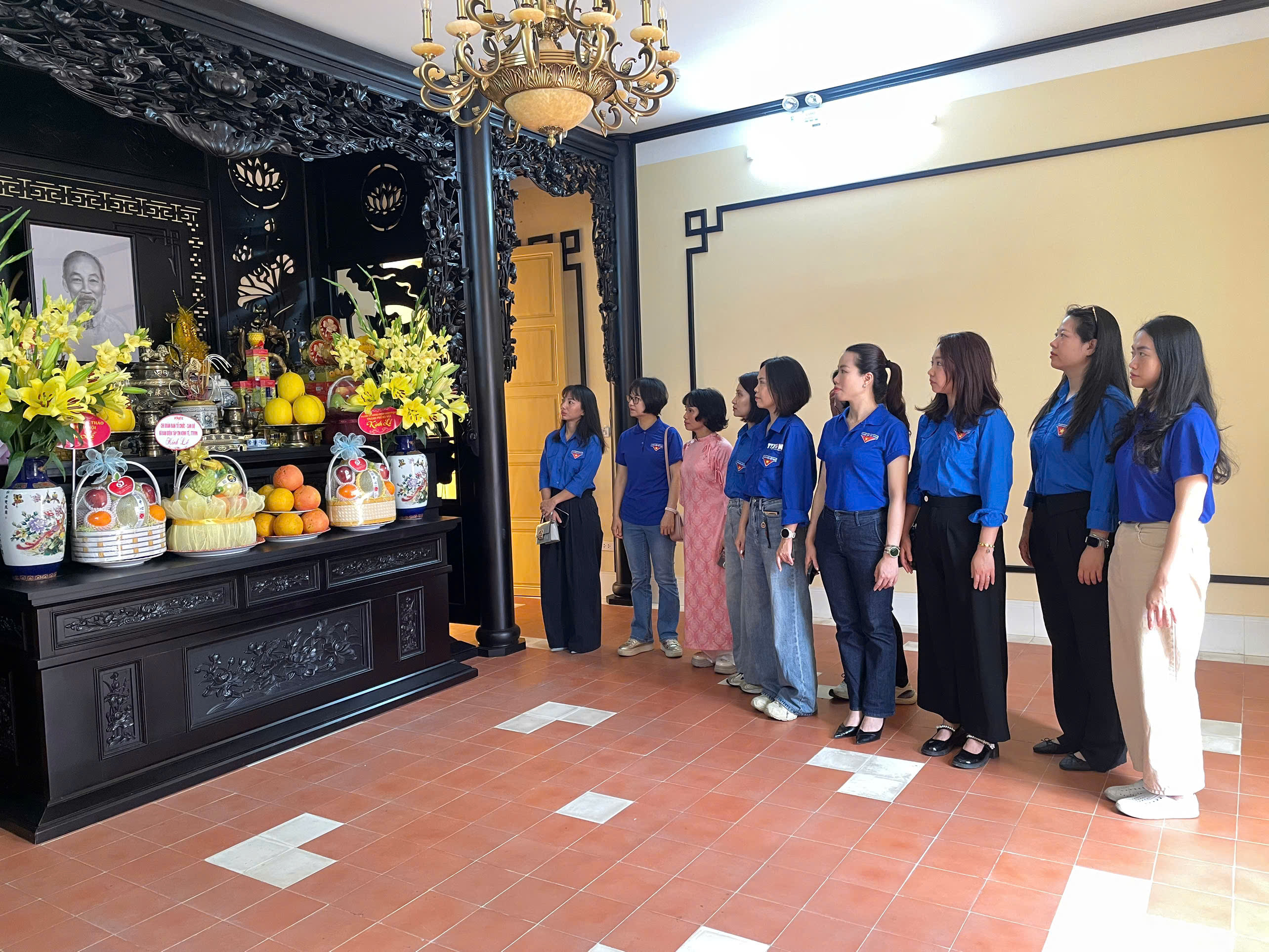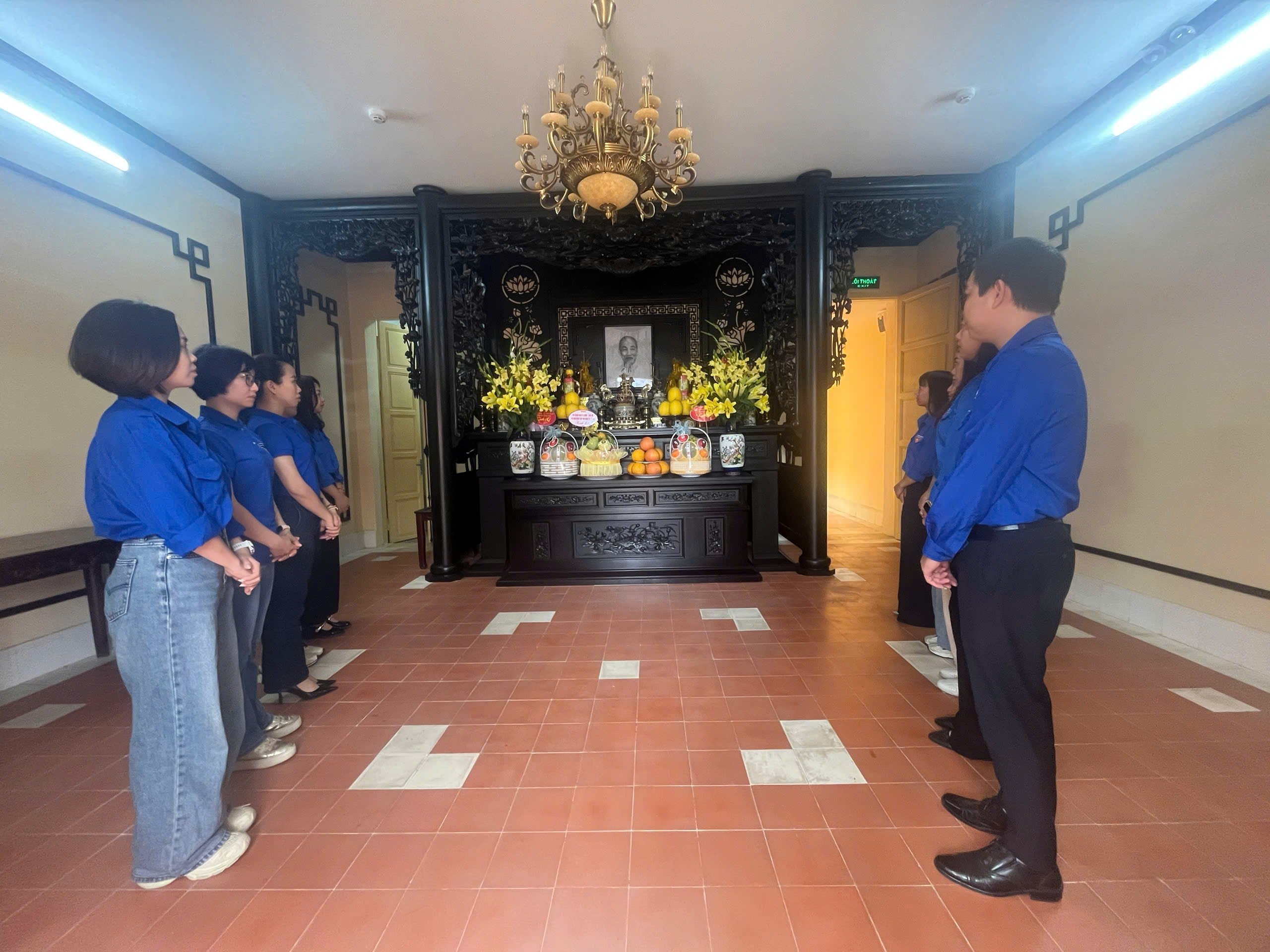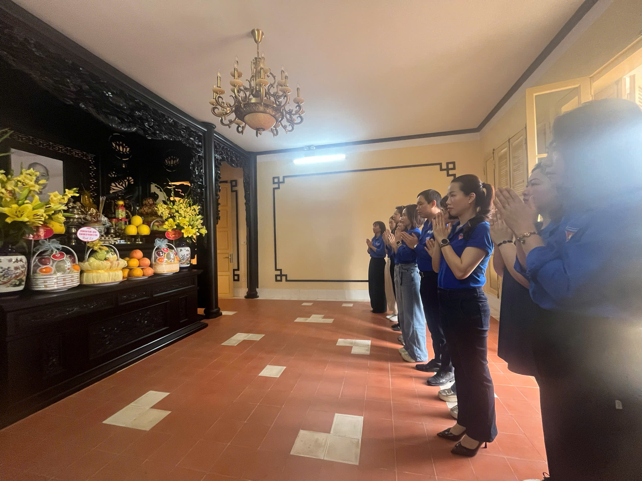 Đoàn viên hai chi đoàn dâng hương tưởng niệm Chủ tịch Hồ Chí Minh tại Di tích Nhà số 48 Hàng Ngang, Hà Nội. Ảnh: Xuân Quang/Bnews/vnanet.vn
