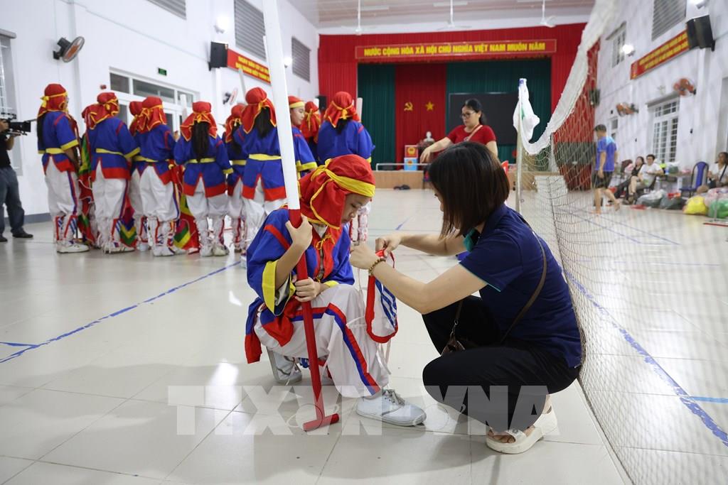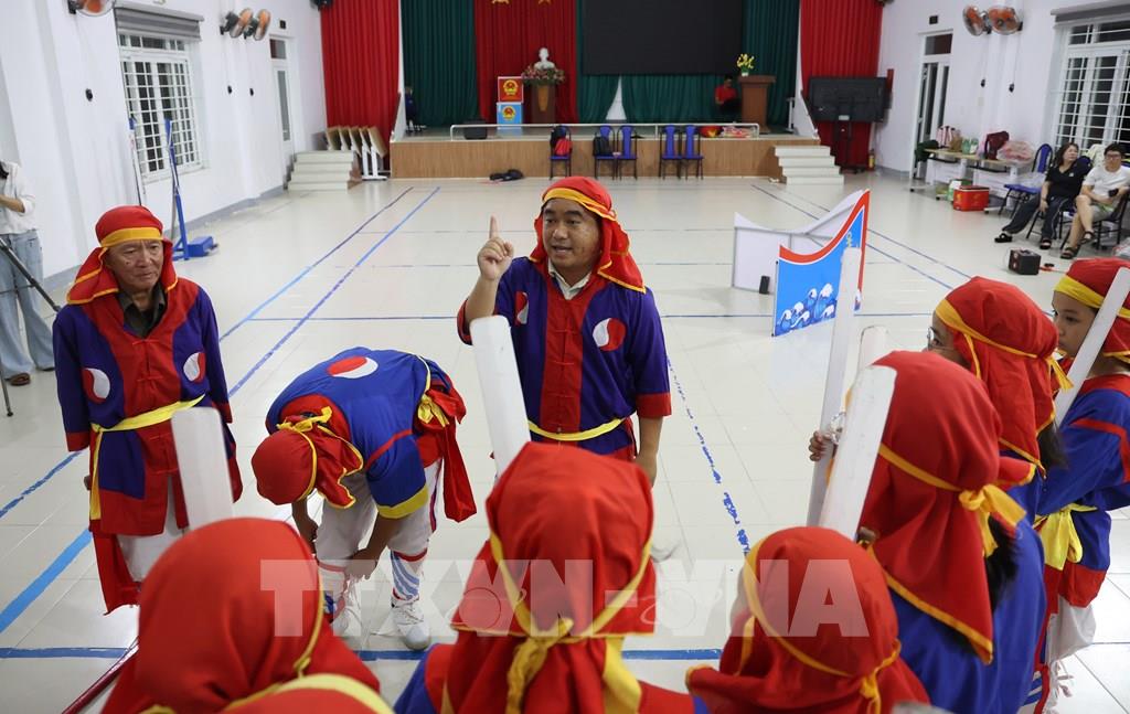 Phụ huynh cũng tham gia hỗ trợ tập luyện hò bả trạo trở thành nơi kết nối thế hệ trẻ với văn hóa truyền thống quê hương. Ảnh Đặng Tuấn -TTXVN