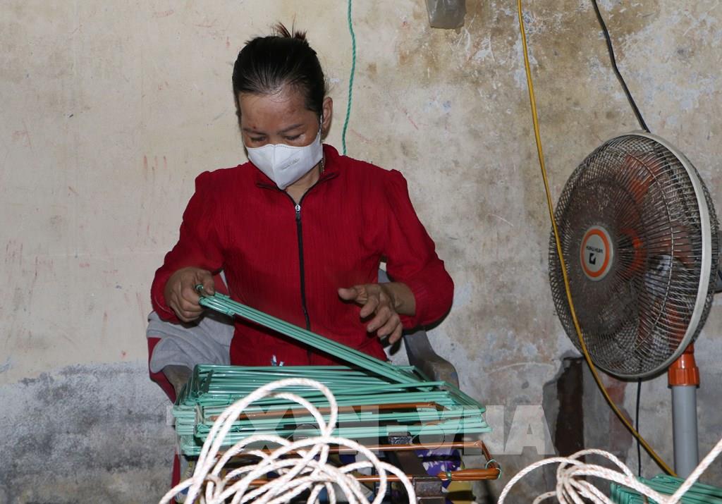 Chị Võ Thị Ngọc Bích, chủ cơ sở sản xuất lưới, ngư cụ (Làng nghề Thơm Rơm) cho biết, đa số các cơ sở sản xuất lưới ở làng nghề chủ yếu là bán sĩ cho các khách hàng cả nước. Nhân công thì nhận hàng về gia công tại nhà, trung bình mỗi ngày cũng có 1-2 đơn hàng, thu nhập trung bình hàng tháng vài trục triệu đồng. Chị Bích cũng cho biết, người dân xóm lưới còn sáng tạo, đa dạng các sản phẩm ngư cụ đánh bắt thủy sản với công năng hiệu quả hơn. Ngoài các loại chài, lưới truyền thống thì các cơ sở nơi đây còn sản xuất thêm một loại rập đặt được ở vùng Biển. Phó trưởng khu vực Tân Lợi 2, phường Thới Long Đinh Thị Diệu Hiền cho biết, nghề đan lưới rất dễ làm, tùy vào công đoạn làm ngư cụ mà người già, trẻ nhỏ đều tham gia được, từ đó giúp người dân có thu nhập ổn định. Hiện có trên 70% hộ dân nơi đây tham gia gia công sản phẩm cho các cơ sở kinh doanh của làng nghề, tùy hoàn cảnh từng hộ mà nhận hàng về nhà gia công hay làm trực tiếp tại cơ sở,.. từ đó người dân nơi đây có thêm thu nhập ổn định. Nhờ đó, công tác giảm nghèo tại khu vực đạt hiệu quả rõ rệt, với tỷ lệ hộ nghèo hiện đã giảm xuống dưới 1% dân số toàn khu vực. Bảo tồn và phát huy làng nghềLàng nghề đan lưới Thơm Rơm được hình thành khoảng năm 1980, khi mới bắt đầu làng nghề chỉ vài hộ sản xuất lưới cung cấp cho người dân ở địa phương để phục vụ việc đánh bắt thủy sản. Đến nay có hơn 40 hộ sản xuất kinh doanh quy mô lớn, thu hút hơn 2.000 ngàn lao động nhàn rỗi tại địa phương lân cận như, xã Cờ Đỏ, xã Thới Hưng, phường Ô Môn,...