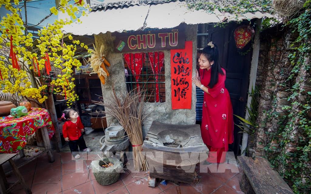 Góc Tết quê mộc mạc tại quán cà phê Mạ Non trở thành điểm dừng chân yêu thích của người dân và du khách trong những ngày giáp Tết. Ảnh: Giang Phương – TTXVN