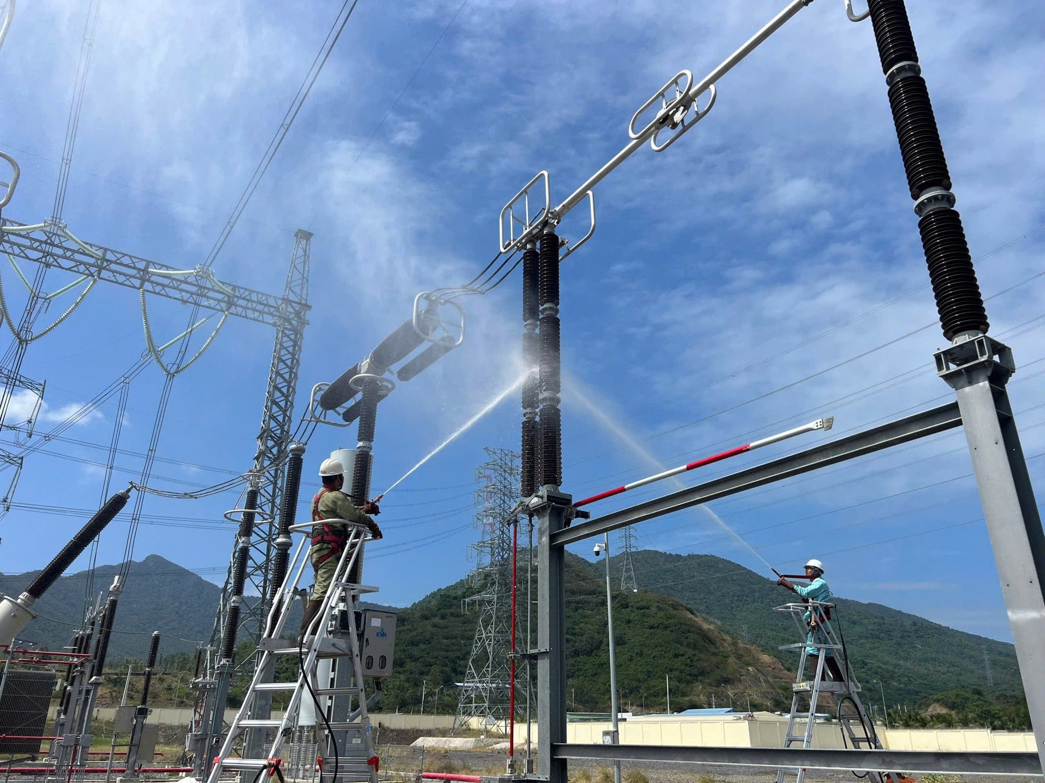 Vệ sinh hotline cách điện TBA 500kV Vân Phong. Nguồn: Mai Phương/Vnanet.vn/Bnews.vn