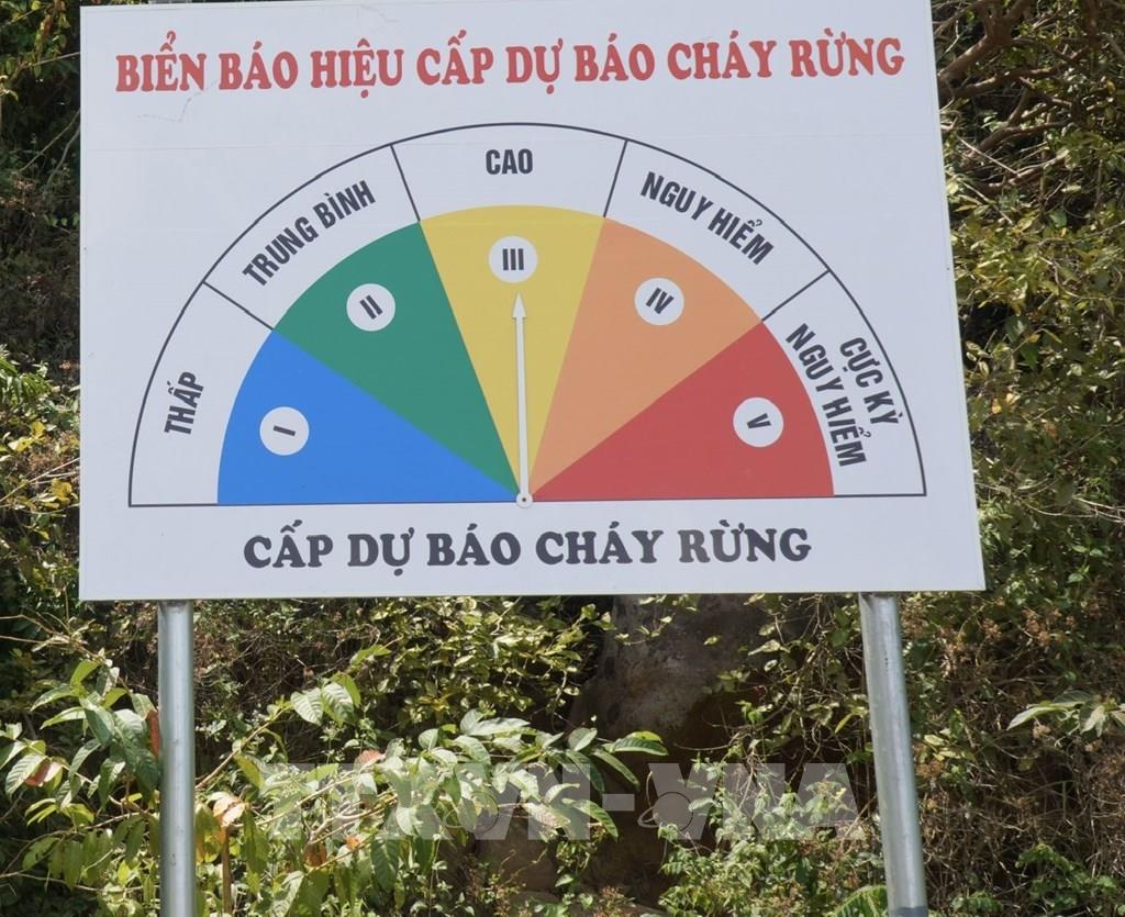 Cảnh báo mức độ nguy cơ cháy rừng ở cụm đảo Hòn Khoai. Ảnh: Tuấn Phi - TTXVN