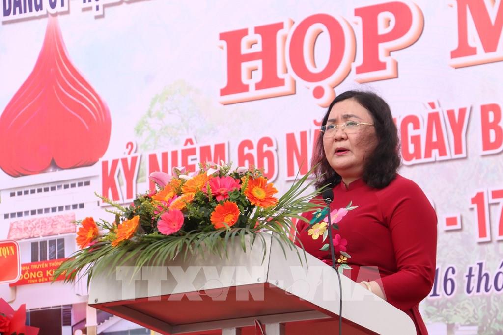Phó Bí thư Thường trực Tỉnh ủy Vĩnh Long Hồ Thị Hoàng Yến phát biểu tại buổi họp mặt kỷ niệm 66 năm Ngày Bến Tre Đồng Khởi (17/01/1960 - 17/01/2026). Ảnh: Huỳnh Phúc Hậu - TTXVN