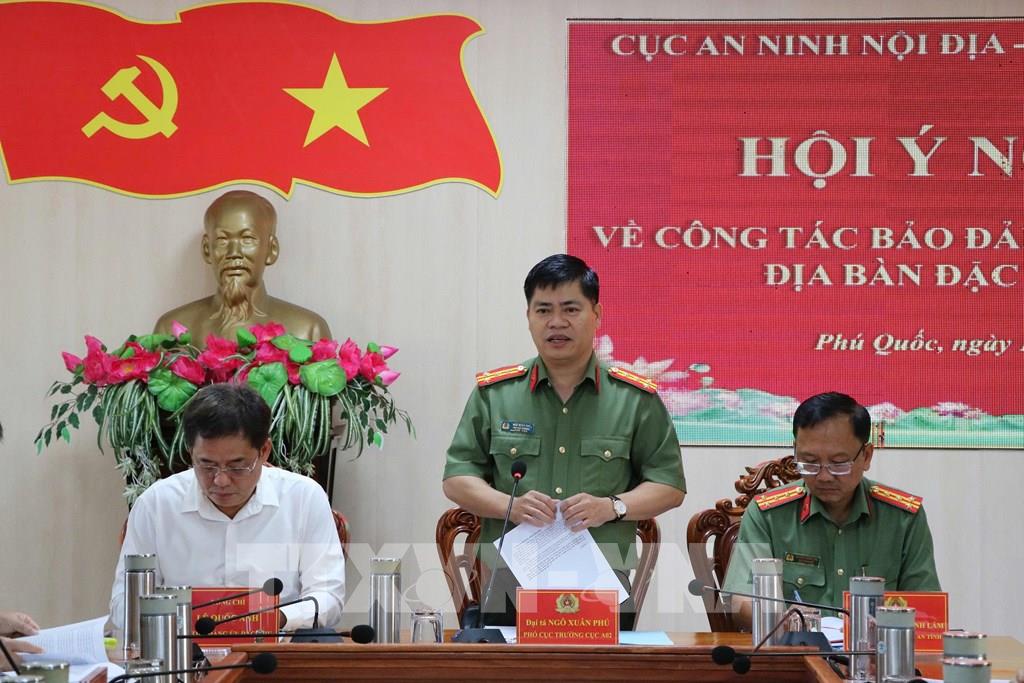 Đại tá Ngô Xuân Phú, Phó Cục trưởng Cục An ninh nội địa ghi nhận và biểu dương tinh thần chủ động, nỗ lực của lực lượng Công an tỉnh An Giang, đặc biệt là Công an đặc khu Phú Quốc, trong công tác nắm, dự báo, xử lý tình hình; góp phần bảo đảm an ninh, an toàn cho người dân và du khách. Đại tá Ngô Xuân Phú đề nghị thời gian tới, lực lượng Công an địa phương tiếp tục tăng cường nắm tình hình cơ sở, chủ động tham mưu, phối hợp chặt chẽ với các ngành, địa phương trong công tác bảo vệ an ninh nội địa, không để xảy ra bị động, bất ngờ trong mọi tình huống.