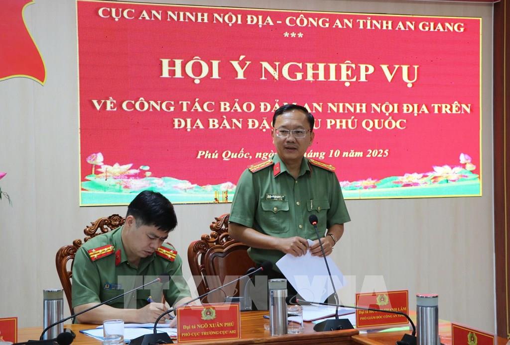 Đại tá Huỳnh Thanh Lâm, Phó Giám đốc Công an tỉnh An Giang cảm ơn sự quan tâm, hướng dẫn nghiệp vụ sâu sát của Cục An ninh nội địa; đồng thời khẳng định, Công an tỉnh luôn xác định Phú Quốc là địa bàn chiến lược về phát triển kinh tế – xã hội và quốc phòng – an ninh. Thời gian tới, Công an tỉnh sẽ tiếp tục chỉ đạo các đơn vị nghiệp vụ, đặc biệt là Công an đặc khu Phú Quốc, chủ động nắm chắc tình hình, tăng cường phối hợp đồng bộ giữa các lực lượng, kịp thời phát hiện, ngăn chặn và xử lý các vấn đề nổi lên, giữ vững ổn định an ninh trên địa bàn.