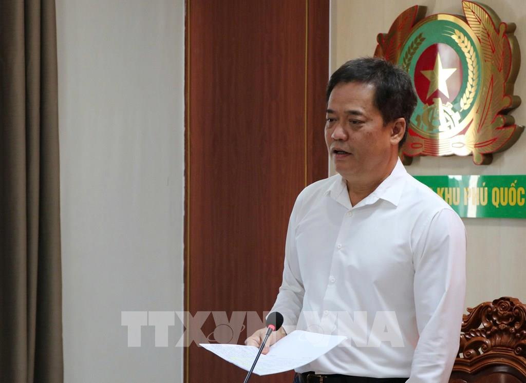 Bí thư đặc khu Phú Quốc Lê Quốc Anh phát biểu tại buổi hội ý nghiệp vụ. Ảnh: Văn Sĩ - Tiến Dũng/TTXVN