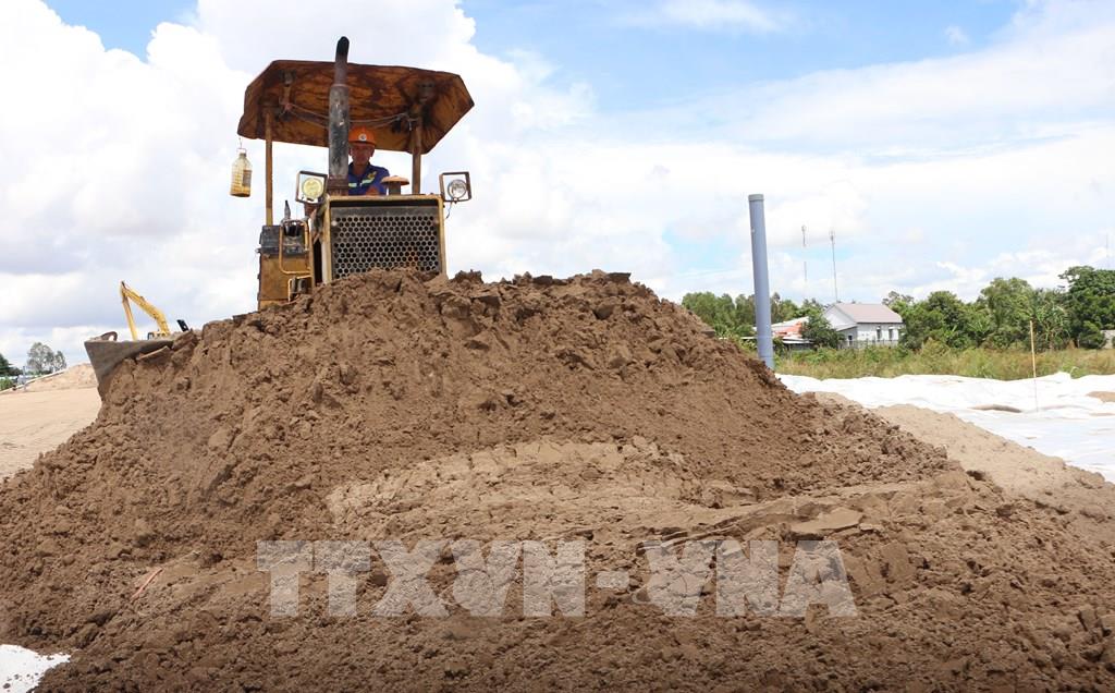Hiện nhiều đoạn dự án thành 4 cao tốc Châu Đốc - Cần Thơ - Sóc Trăng đang thực hiện công đoạn gia tải. Ảnh Tuấn Phi- TTXVN