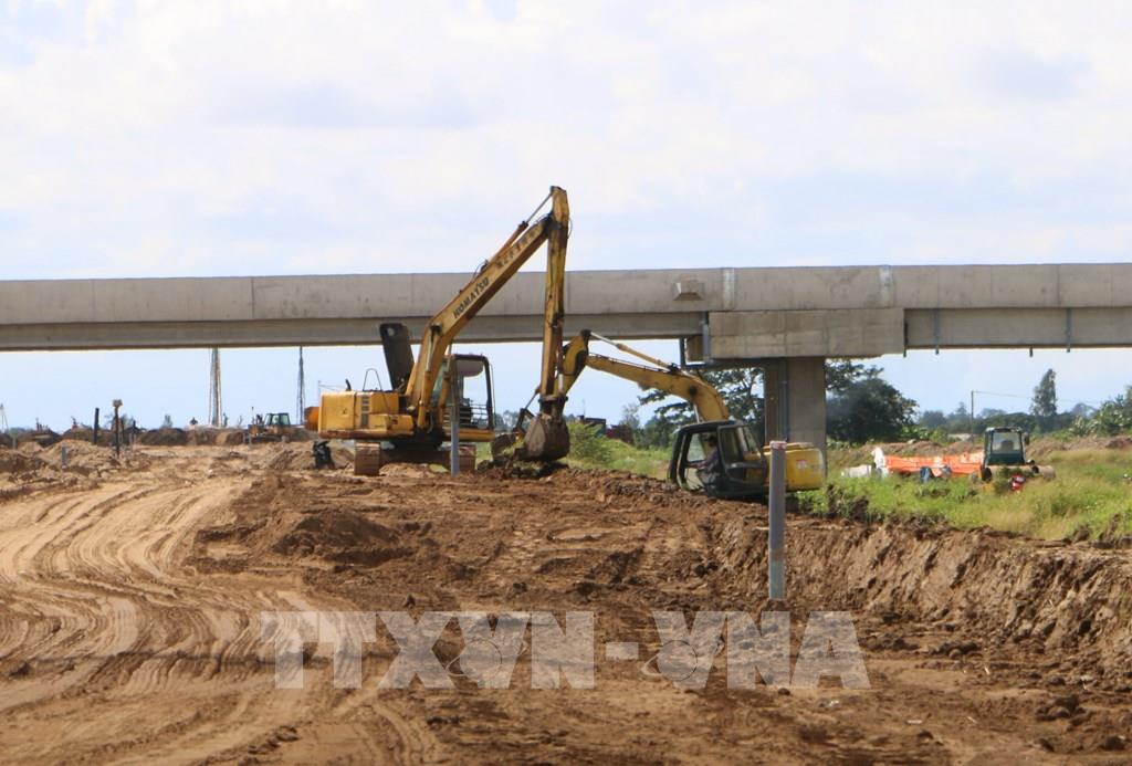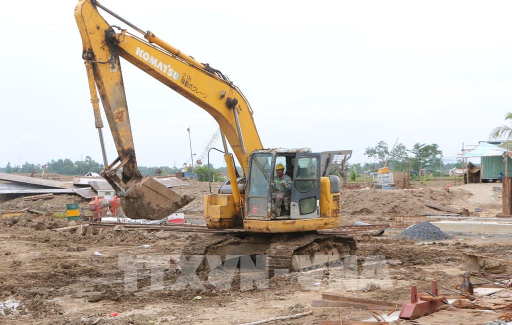 Hiện tiến độ dự án thành phần 2, 3 và 4 thuộc cao tốc Châu Đốc - Cần Thơ - Sóc Trăng đạt 45% khối lượng công trình. Ảnh: Tuấn Phi - TTXVN