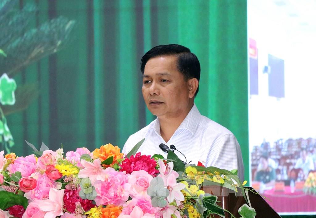 Ủy viên Trung ương Đảng, Bí thư Tỉnh ủy Vĩnh Long Trần Văn Lâu phát biểu tại hội nghị. Ảnh: Phạm Minh Tuấn - TTXVN