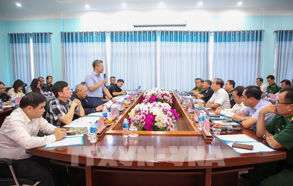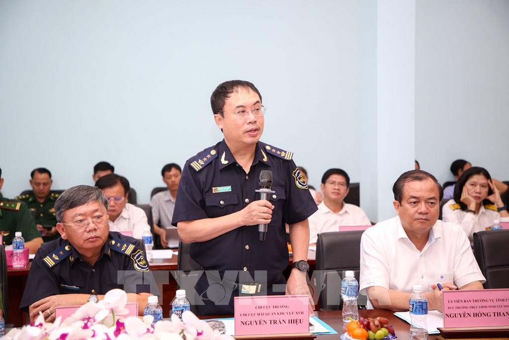 Đoàn công tác Cục Hải quan do ông Âu Anh Tuấn, Phó Cục trưởng Cục Hải quan dẫn đầu đã có buổi làm việc tại Cửa khẩu quốc tế Mộc Bài, tỉnh Tây Ninh. Ảnh: Giang Phương - TTXVN