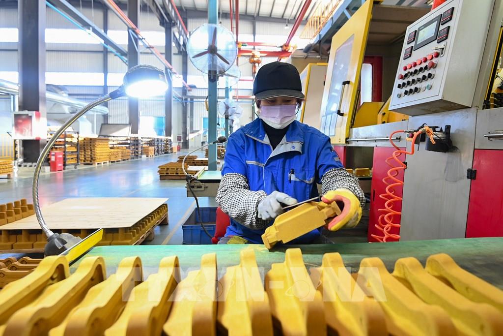 Công nhân làm việc tại nhà máy ở Sơn Đông, Trung Quốc. Ảnh: THX/TTXVN