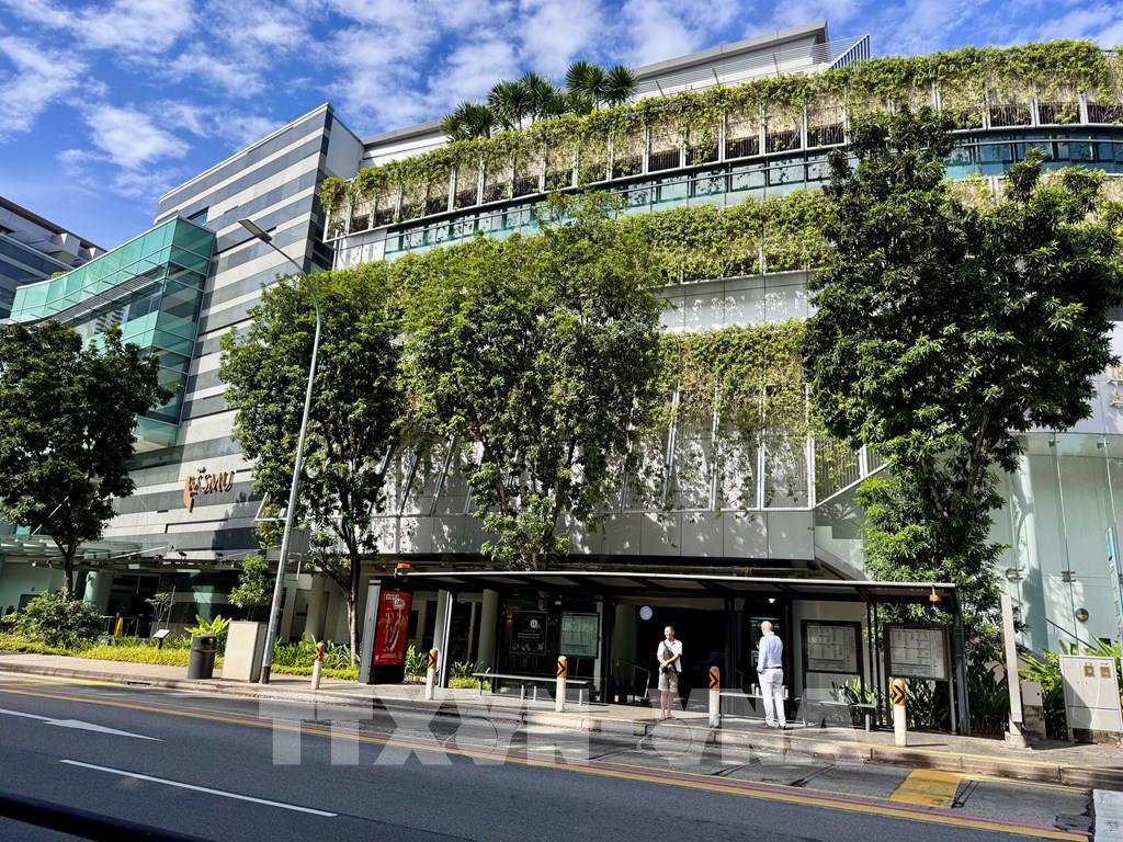 Singapore ưu tiên nhiều mảng xanh trong quá trình đô thị hóa để chống ngập lụt. Ảnh: Đỗ Vân - PV TTXVN tại Singapore Các tòa nhà xanh góp phần giảm lượng nước mưa gây ngập lụt. Ảnh: Đỗ Vân - PV TTXVN tại Singapore