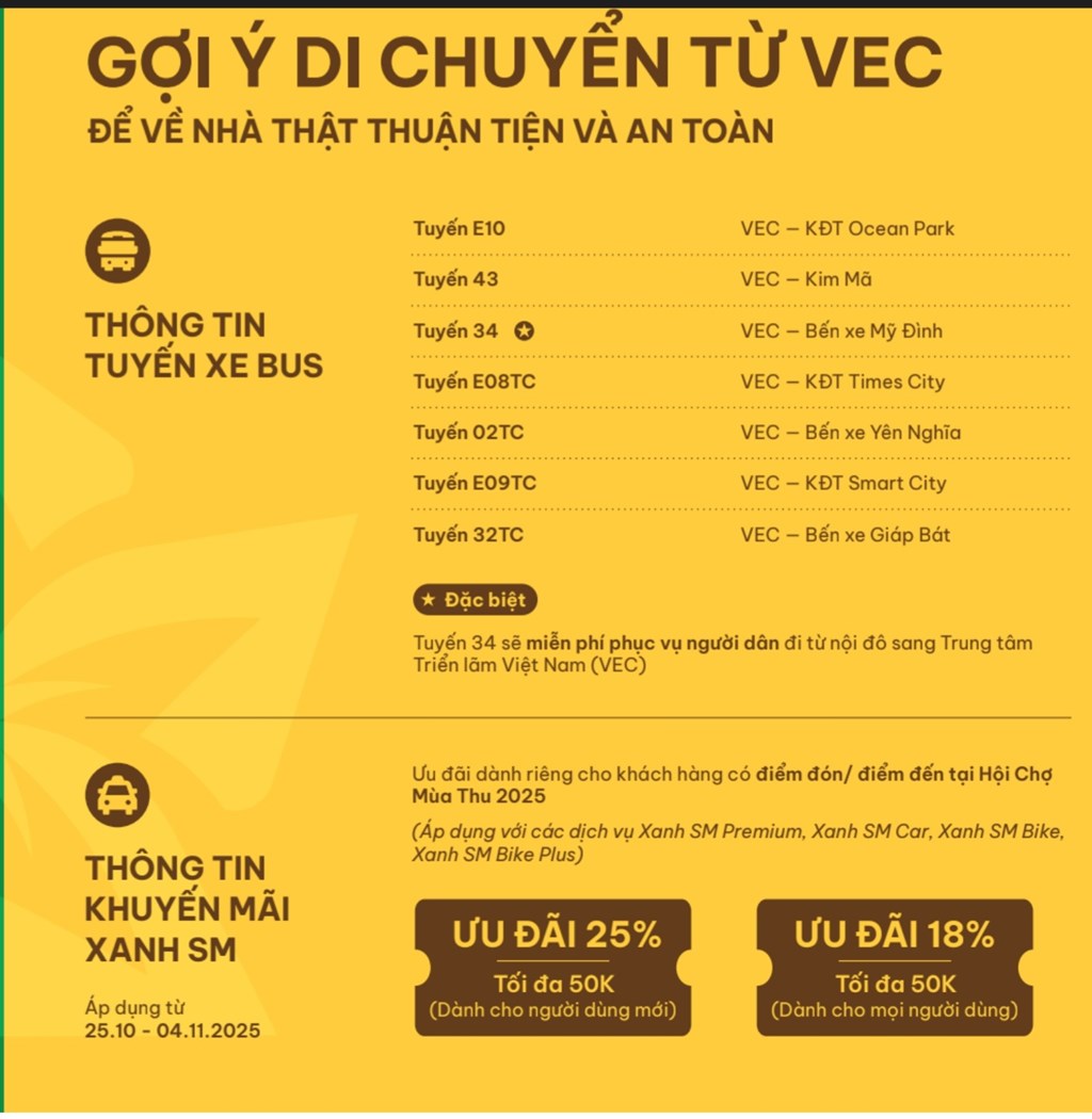 Gợi ý lịch trình di chuyển bằng xe buýt tới Hội chợ mùa Thu 2025