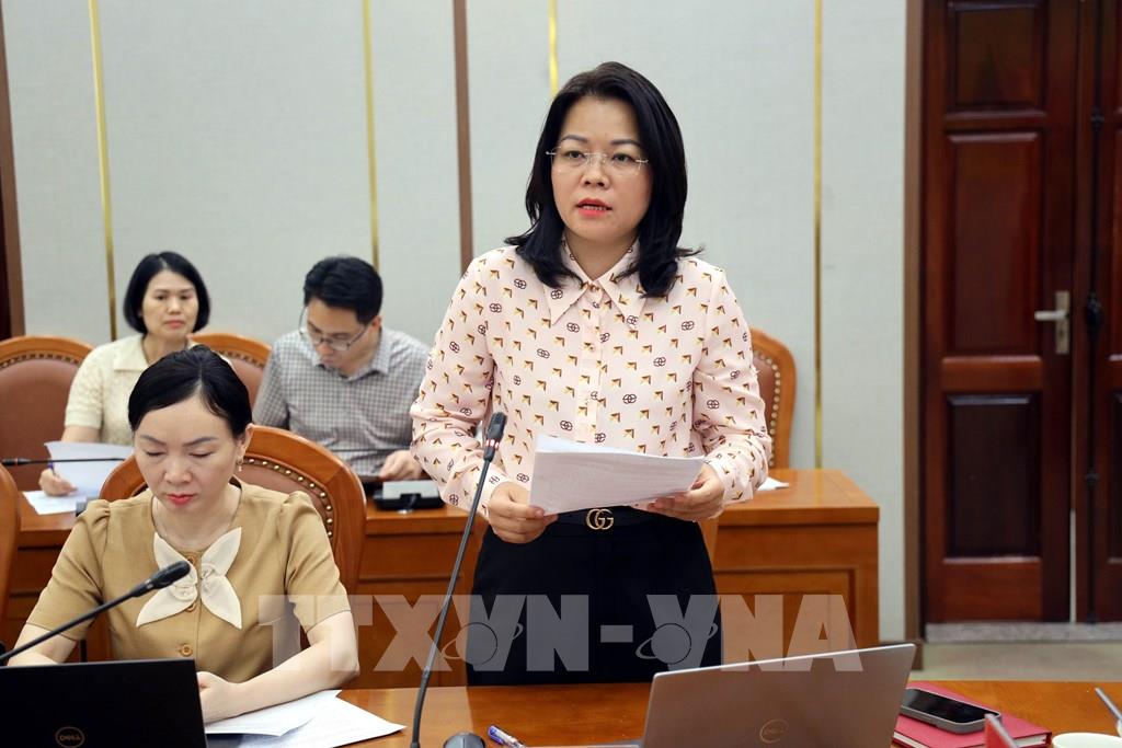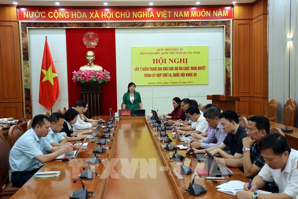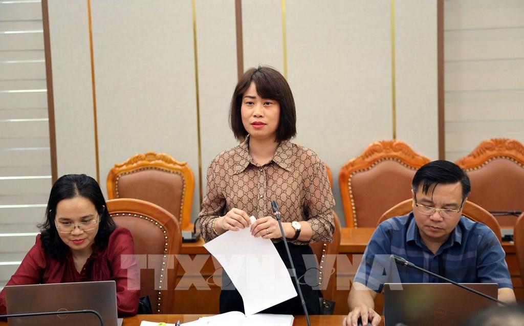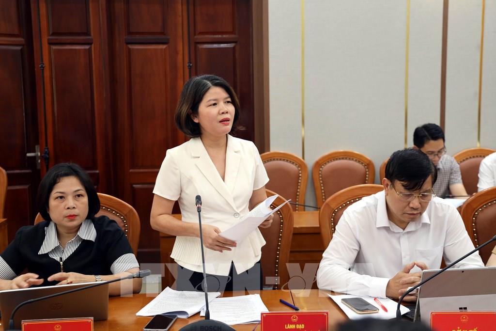 Bà Vũ Thị Diệu Linh, Trưởng ban Văn hóa xã hội, Hội đồng nhân dân tỉnh Quảng Ninh đóng góp ý kiến tại hội nghị. Ảnh: Đức Hiếu - TTXVN
