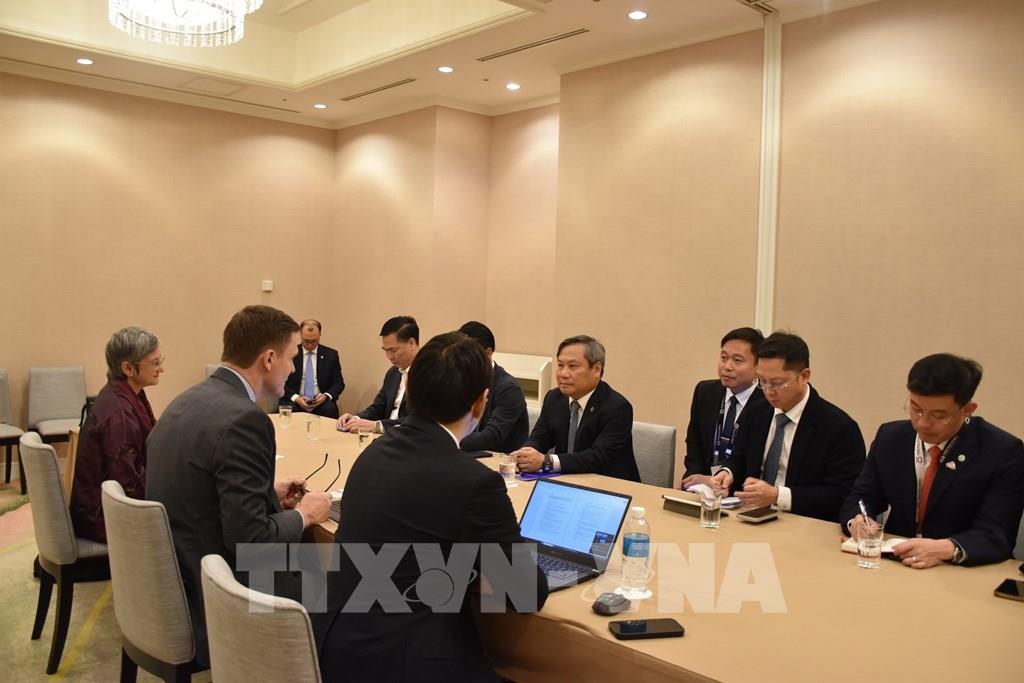 Chủ tịch UBND thành phố Hà Nội Vũ Đại Thắng tiếp xúc song phương với đại diện Ngân hàng Phát triển châu Á (ADB). Ảnh: Nguyễn Tuyến – Pv TTXVN