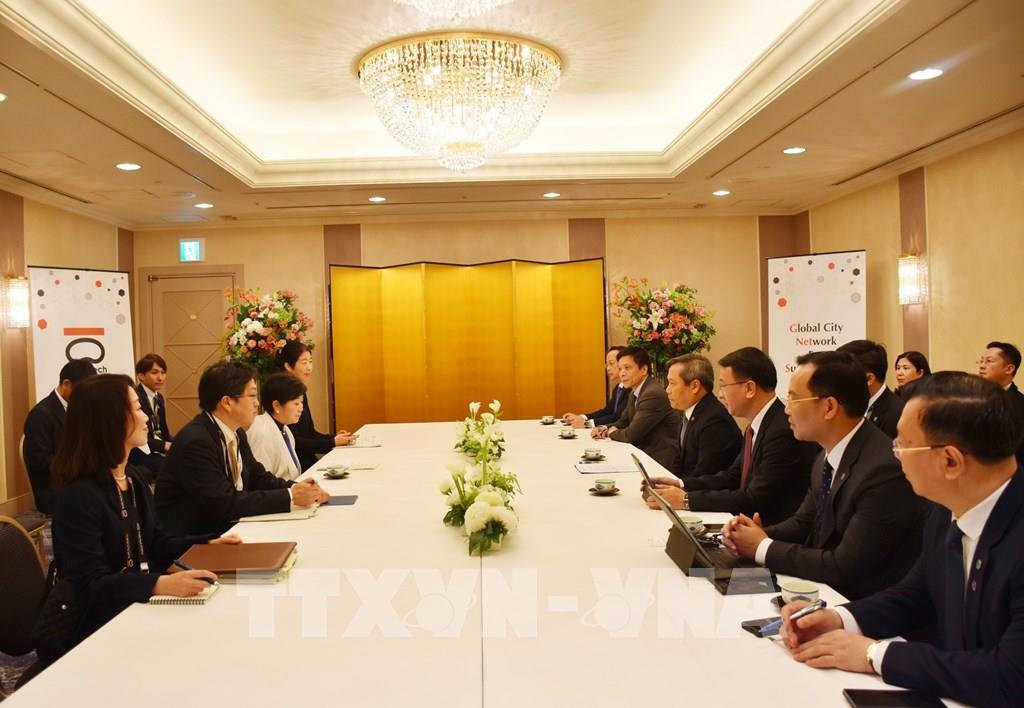 Chủ tịch UBND thành phố Hà Nội Vũ Đại Thắng hội kiến Thống đốc Tokyo, bà Koike Yuriko. Ảnh: Nguyễn Tuyến – Pv TTXVN