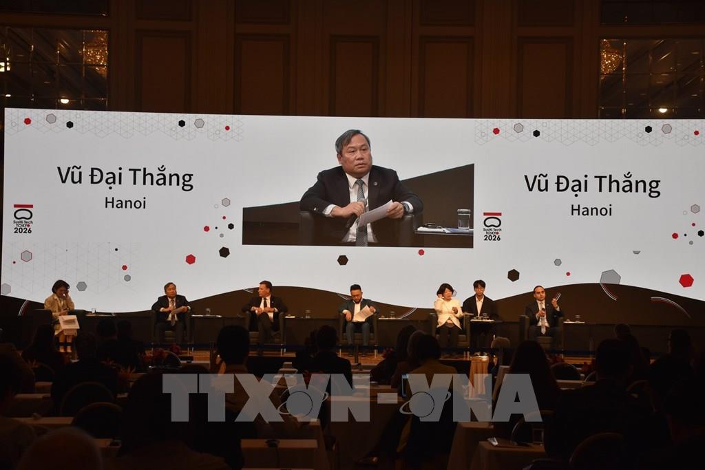Chủ tịch UBND thành phố Hà Nội Vũ Đại Thắng tham dự phiên họp toàn thể bế mạc Hội nghị G-NETS 2026. Ảnh: Nguyễn Tuyến – Pv TTXVN