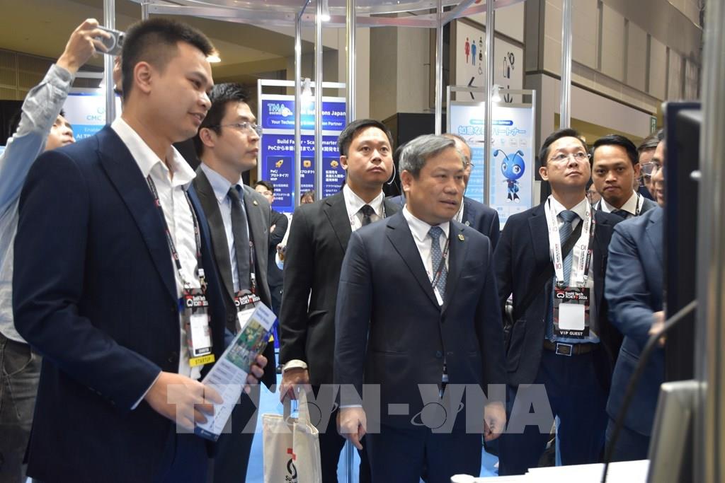 Chủ tịch UBND thành phố Hà Nội Vũ Đại Thắng tham quan khu vực trưng bày của các doanh nghiệp chuyển đổi số và công nghệ Việt Nam tại Triển lãm công nghệ cao SusHi Tech Tokyo 2026. Ảnh: Nguyễn Tuyến – Pv TTXVN