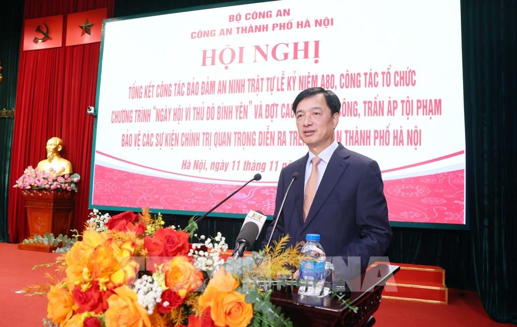 Trung tướng Nguyễn Thanh Tùng, Giám đốc Công an thành phố Hà Nội phát biểu. Ảnh: Phạm Kiên - TTXVN