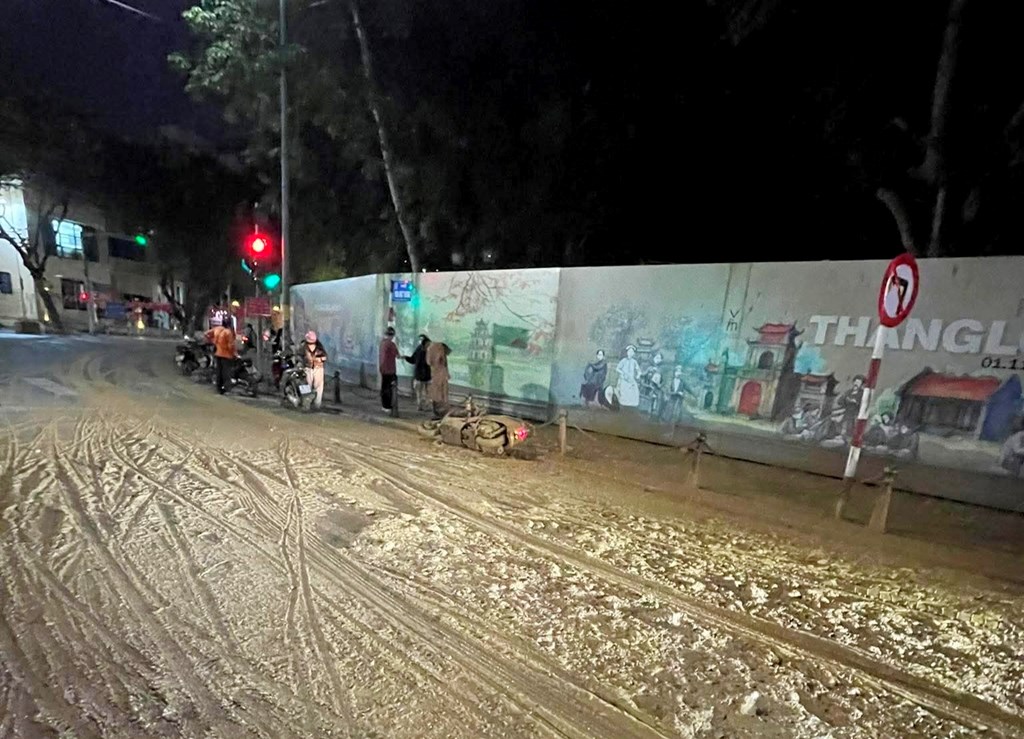 Trao đổi với phóng viên TTXVN, Trung tá Nguyễn Quang Thành, Đội trưởng Đội Cảnh sát giao thông đường bộ số 3, Phòng Cảnh sát giao thông (Công an thành phố Hà Nội) cho biết, nhận được tin báo, Đội Cảnh sát giao thông đường bộ số 3 đã cử cán bộ, chiến sĩ đến hiện trường giải quyết vụ việc và đặt cảnh báo cho người tham gia giao thông tránh khu vực trơn trượt.