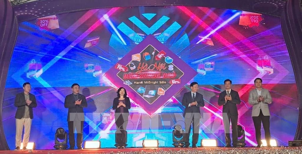 Lãnh đạo sở Công Thương Hà Nội nhấn nút khai mạc sự kiện. Ảnh Phương Anh-TTXVN