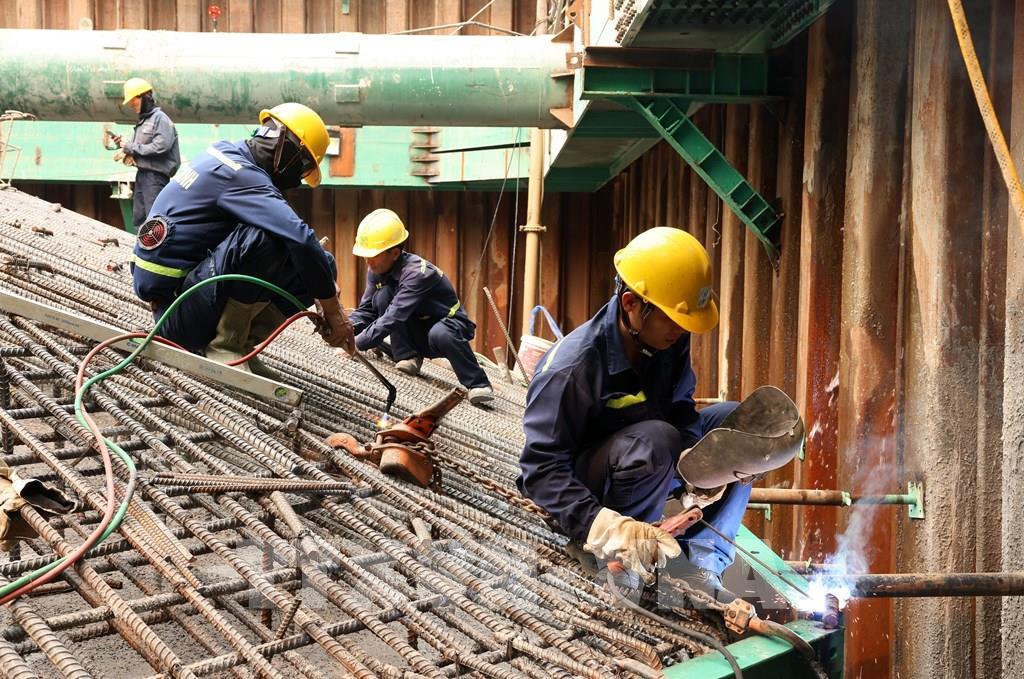 Không khí thi công khẩn trường trên công trường dự án cầu Trần Hưng Đạo những ngày tháng 4/2026. Ảnh: Quốc Khánh - TTXVN