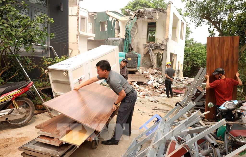 Những hộ dân đầu tiên ngõ 695 phố Bạch Đằng, phường Hồng Hà di chuyển đồ đạc bàn giao mặt bằng cho nhà thầu Trung Chính, xong trước ngày 20/4. Ảnh: Quốc Khánh - TTXVN