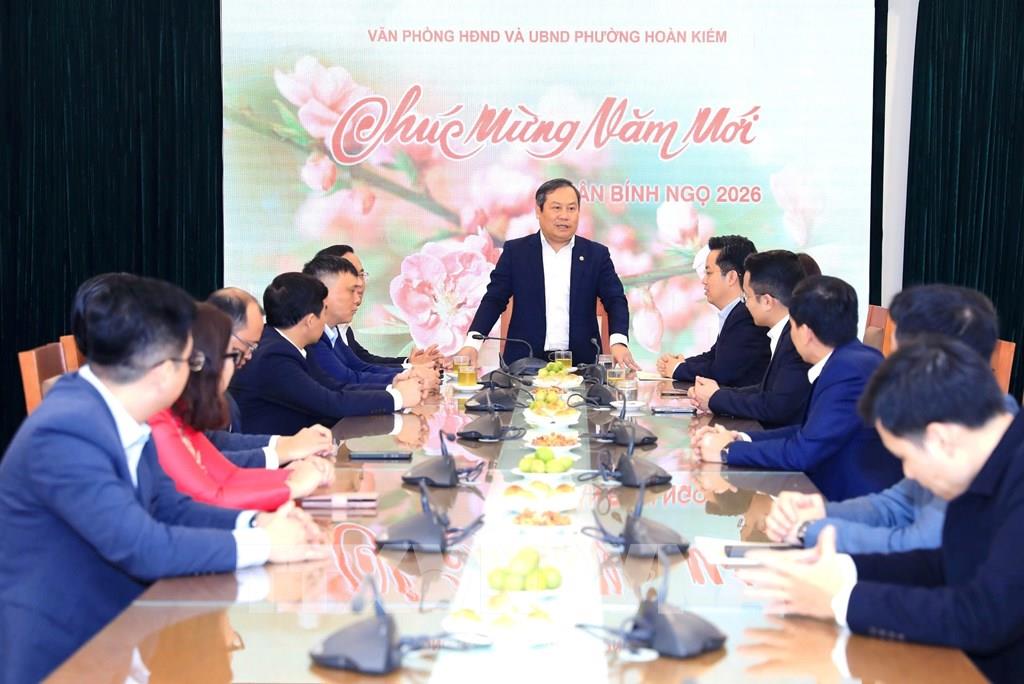 Chủ tịch UBND thành phố Hà Nội Vũ Đại Thắng làm việc với Đảng ủy – HĐND – UBND – Ủy ban MTTQ Việt Nam phường Hoàn Kiếm về nhiệm vụ trọng tâm đầu năm 2026. Ảnh: TTXVN phát