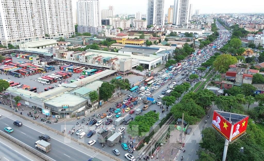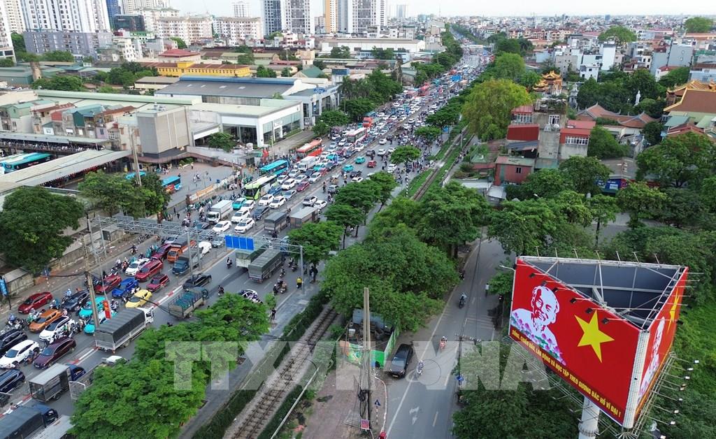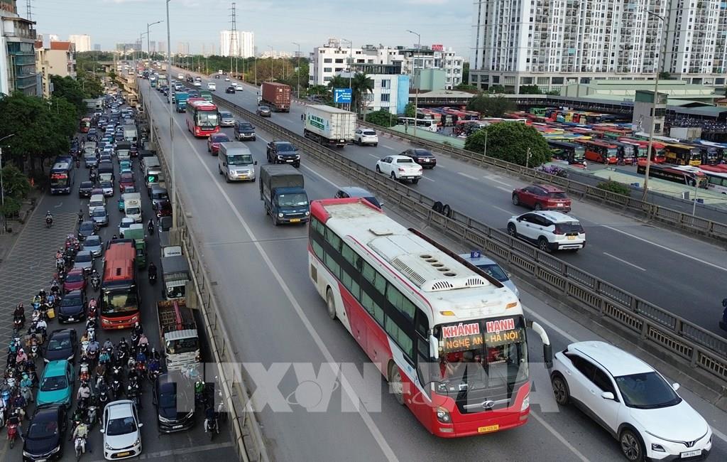 Đường Ngọc Hồi ùn tắc cục bộ do lượng phương tiện di chuyển về quê, đi du lịch tăng cao trong cuối buổi làm việc của kỳ nghỉ lễ 30/4-1/5. Ảnh: Quốc Khánh - TTXVN