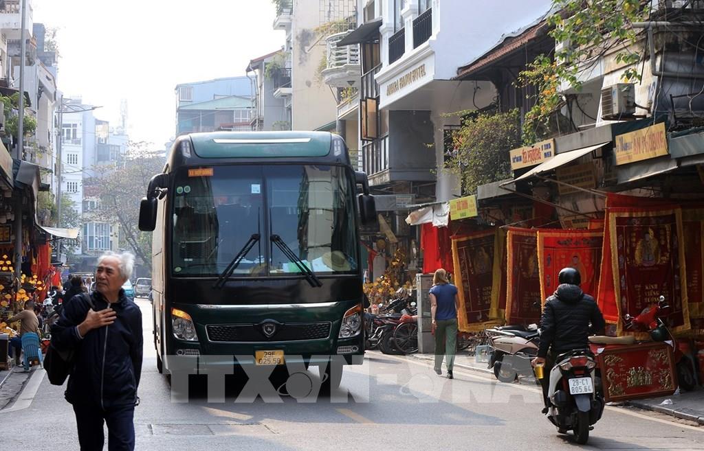 Xe vận tải hành khách di chuyển trên đường phố Hà Nội. Ảnh: Tuấn Anh - TTXVN