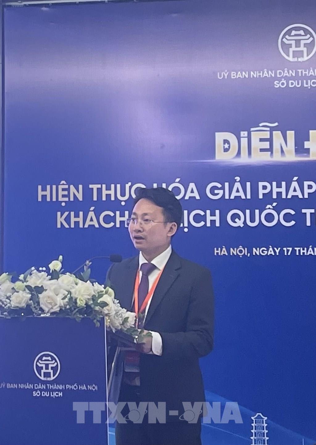 Phó Giám đốc Sở Du lịch Hà Nội Trần Trung Hiếu phát biểu tại diễn đàn. Ảnh: Tuyết Mai - TTXVN