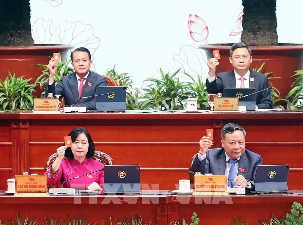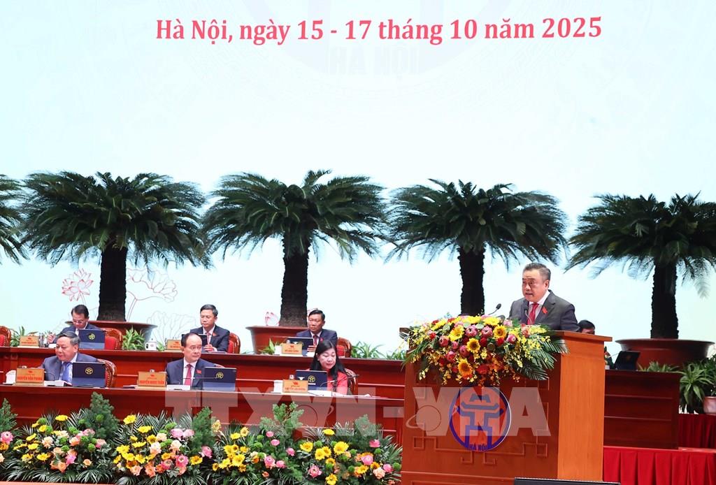 Các chỉ tiêu chủ yếu đến năm 2030, gồm 4 nhóm với 43 chỉ tiêu cụ thể, trong đó có một số chỉ tiêu tổng hợp như, số đảng viên kết nạp mới hằng năm tối thiểu đạt 11.000 đảng viên, phấn đấu đến năm 2030 đạt 3% tổng số đảng viên; phấn đấu tốc độ tăng trưởng GRDP đạt từ 11,0%/năm trở lên; GRDP bình quân đầu người trên 12.000 USD; chỉ số phát triển con người (HDI) đạt khoảng 0,88 điểm; chỉ số hạnh phúc (HPI) đạt 9/10 tiêu chí… Đại hội đề ra các đột phá phát triển, gồm: Tập trung xây dựng, hoàn thiện thể chế phát triển Thủ đô; phát triển, khai thác, sử dụng hiệu quả nguồn nhân lực chất lượng cao và thu hút nhân tài; phát triển hệ thống hạ tầng hiện đại, thông minh và kết nối. Các nhóm nhiệm vụ, giải pháp trọng tâm trong giai đoạn 2025 - 2030, điển hình gồm: Xây dựng, hoàn thiện thể chế, chính sách đặc thù phát triển Thủ đô; xác lập mô hình tăng trưởng mới, đẩy mạnh công nghiệp hóa, hiện đại hóa, phát triển mạnh mẽ kinh tế tư nhân; thúc đẩy mạnh mẽ khoa học, công nghệ, đổi mới sáng tạo và chuyển đổi số toàn diện trong mọi lĩnh vực; xây dựng Thành phố thông minh lấy người dân, doanh nghiệp là trung tâm, là chủ thể, là nguồn lực, động lực chính...Đại hội Đại biểu Đảng bộ thành phố Hà Nội lần thứ XVIII diễn ra từ ngày 15 - 17/10/2025. Đại hội có nhiệm vụ kiểm điểm việc thực hiện Nghị quyết Đại hội XVII Đảng bộ Thành phố (2020-2025); quyết định mục tiêu, phương hướng, nhiệm vụ xây dựng, phát triển Thủ đô giai đoạn 2025-2030, tầm nhìn đến năm 2045; bầu Ban Chấp hành Đảng bộ thành phố khóa XVIII và bầu Đoàn đại biểu đi dự Đại hội lần thứ XIV của Đảng; đồng thời thảo luận, đóng góp ý kiến vào dự thảo các văn kiện Đại hội XIV của Đảng.